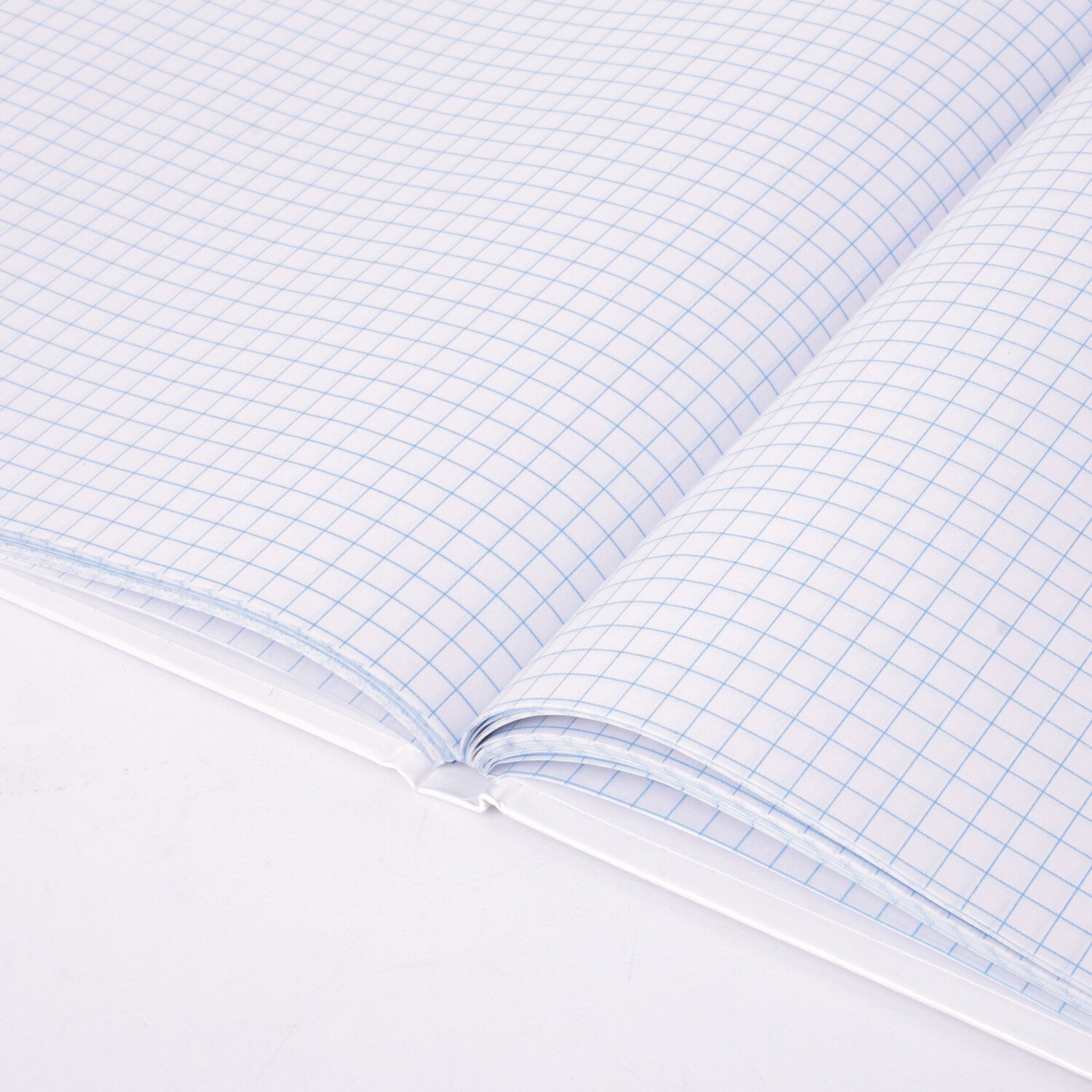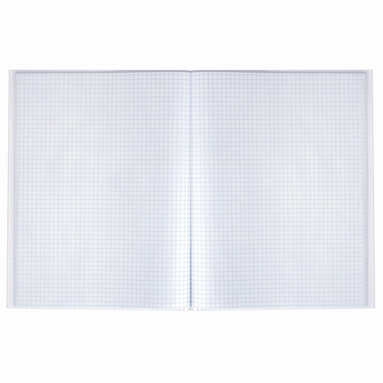 Книжная обложка с покрытием из глянцевой пленки приятна на ощупь и имеет эстетичный внешний вид. В сочетании с книжным переплетом ей свойственна хорошая износоустойчивость. Такое изделие сохраняет целостность в течение долгого времени. Внутренний блок 80 листов выполнен из офсетной белой бумаги 60 г/м2 и разлинован в клетку. Формат А4 (210х265 мм).