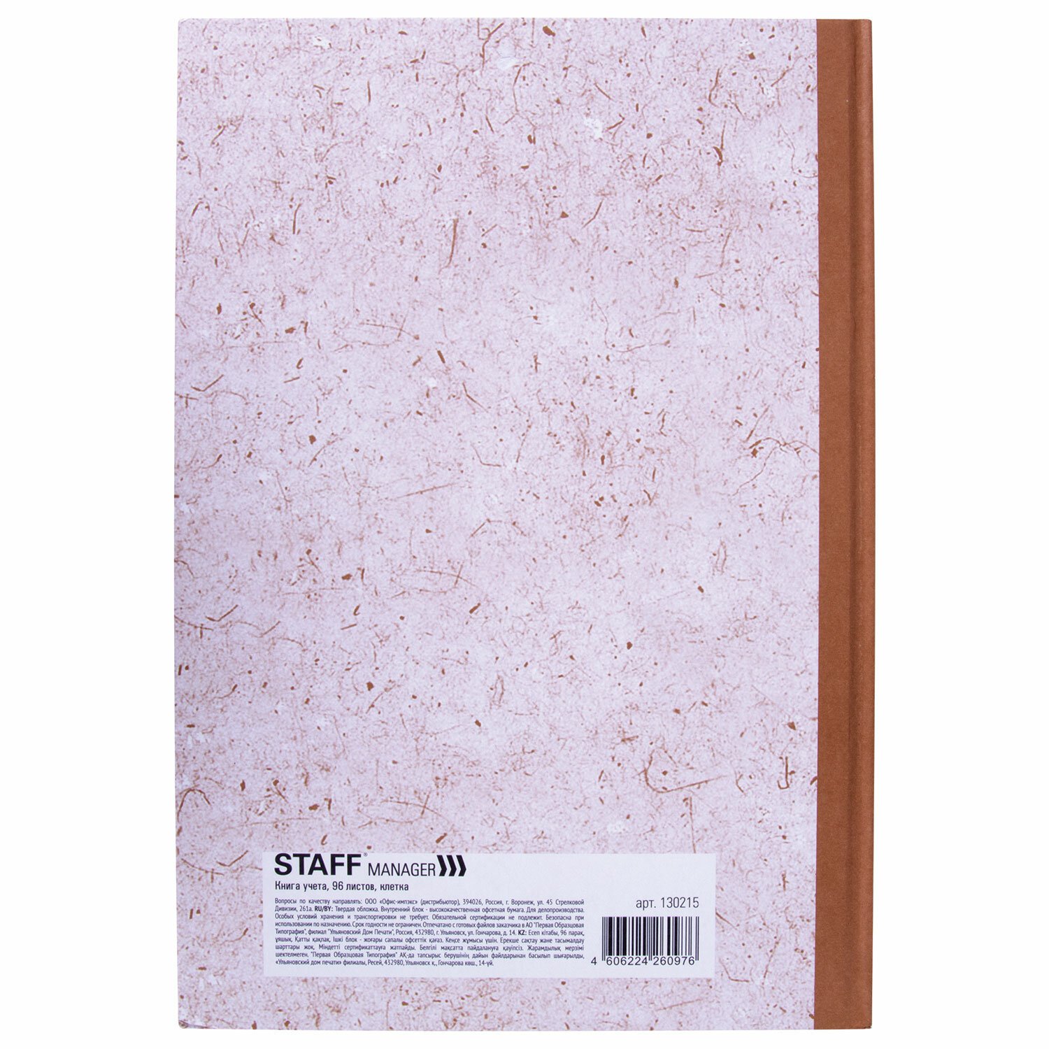 Книга учета 96 л., клетка, твердая, крафт, блок офсет, А4 (200х290 мм), STAFF, 130215