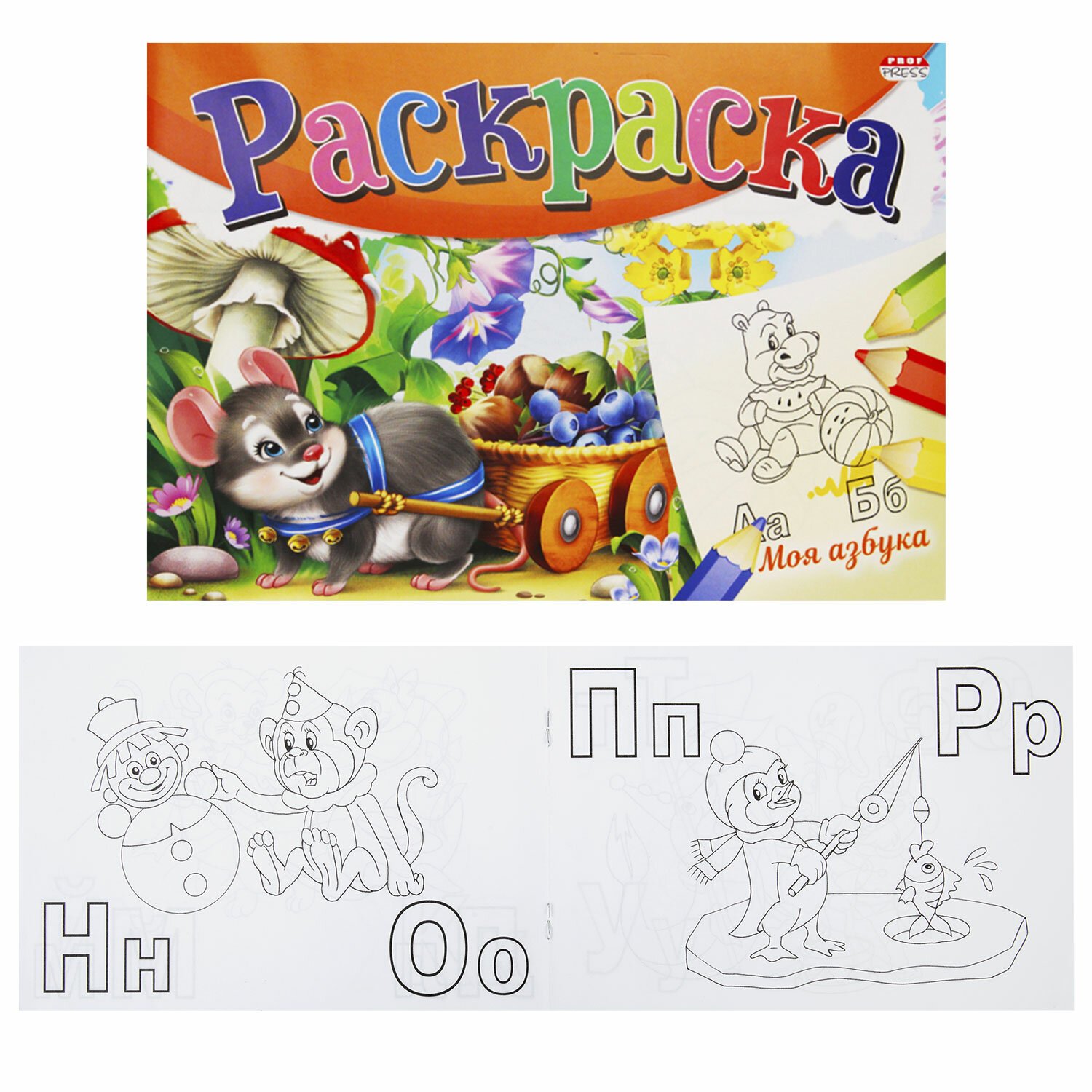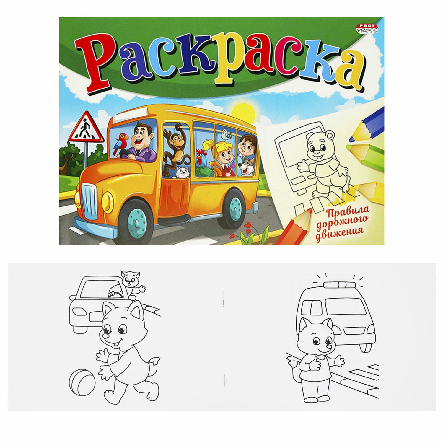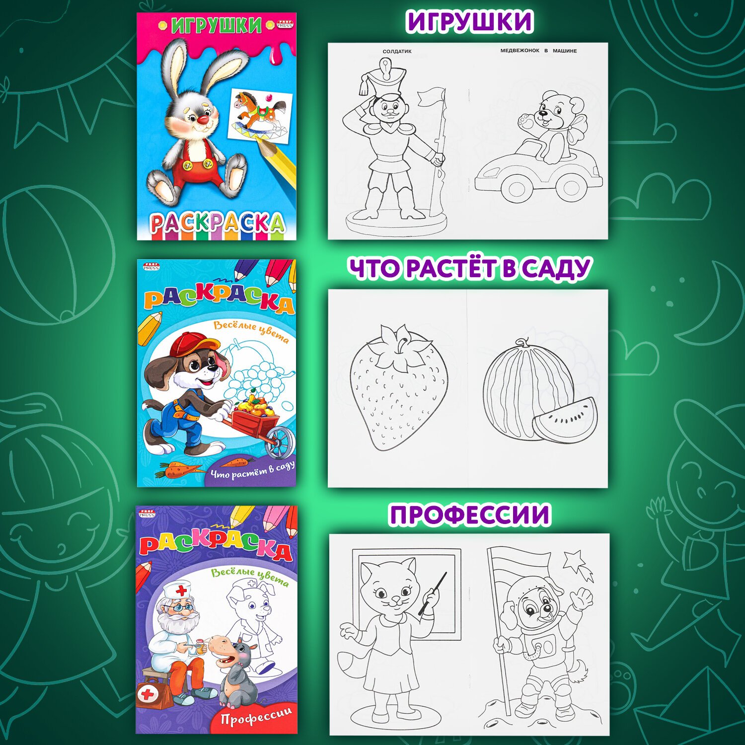 - раскраски с общими развивающими сюжетами - Сказки (с кратким описанием и изображением последовательности истории), Азбука, Овощи и фрукты, Профессии, Правила дорожного движения;