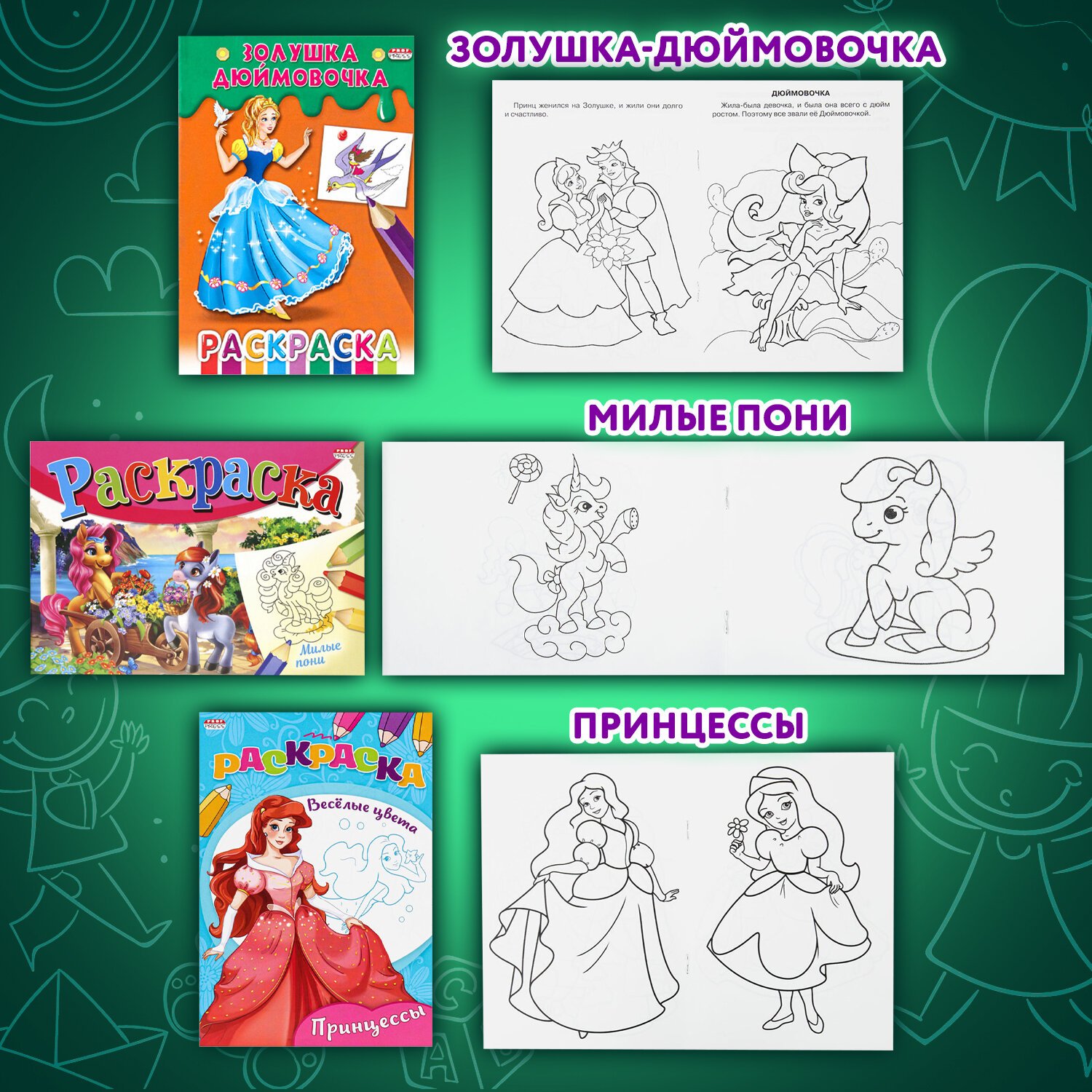 Раскраски "Для девочек", КОМПЛЕКТ 10 шт., А4, 214х290 мм, 16 стр., лицензия, УМКА