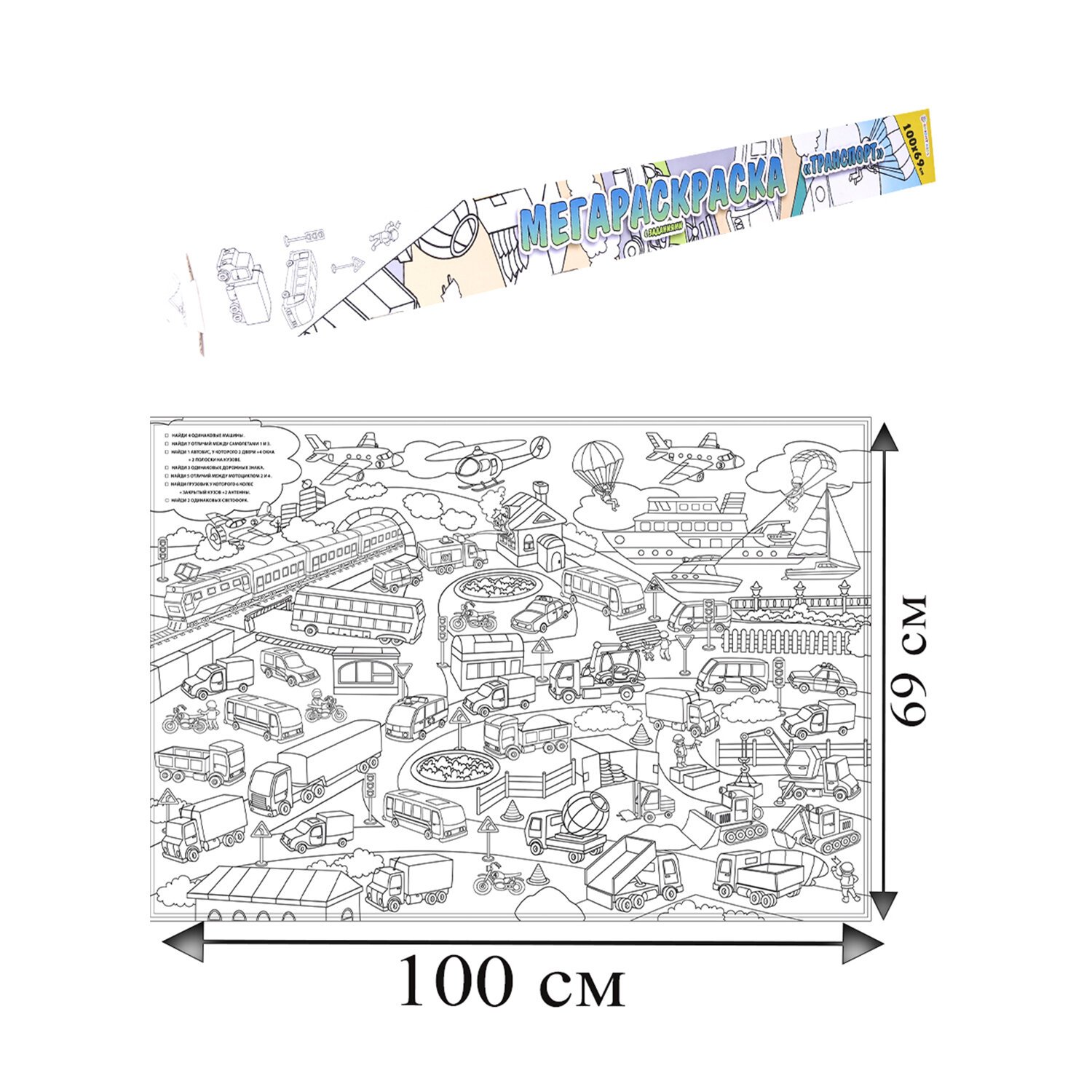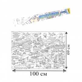 Книжка-раскраска МЕГАРАСКРАСКА-ПЛАКАТ ТРАНСПОРТ, 690х1000 мм, BK, Р-1053