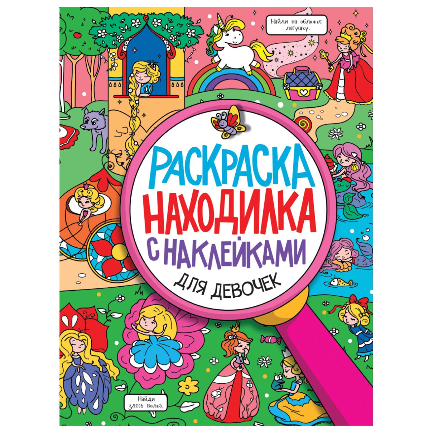 Книжка-раскраска НАХОДИЛКА С НАКЛЕЙКАМИ, для девочек, 197х276 мм, 24 стр., ПП, 2151-3