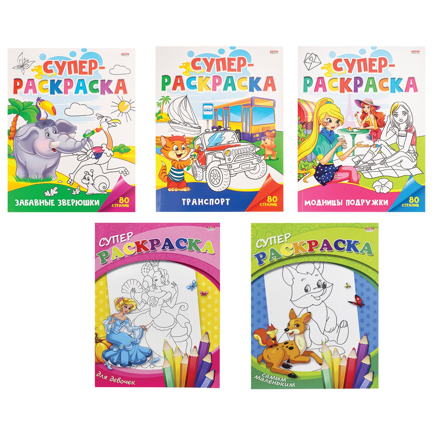 Книжка-раскраска СУПЕР РАСКРАСКА, АССОРТИ, 200х280 мм, 80 страниц, ПП