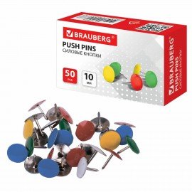 Кнопки канцелярские BRAUBERG используются для крепления бумаги на пробковые и фетровые доски, а также на другие поверхности.