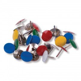 Кнопки со стальной шляпкой с цветным покрытием диаметром 10 мм и стальным острием длиной 9 мм. 50 штук в картонной коробке.