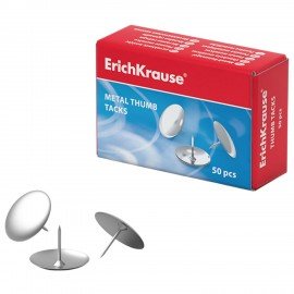 Кнопки канцелярские ERICH KRAUSE металлические, никелированные, 10мм, 50 штук в картонной коробке, 7851