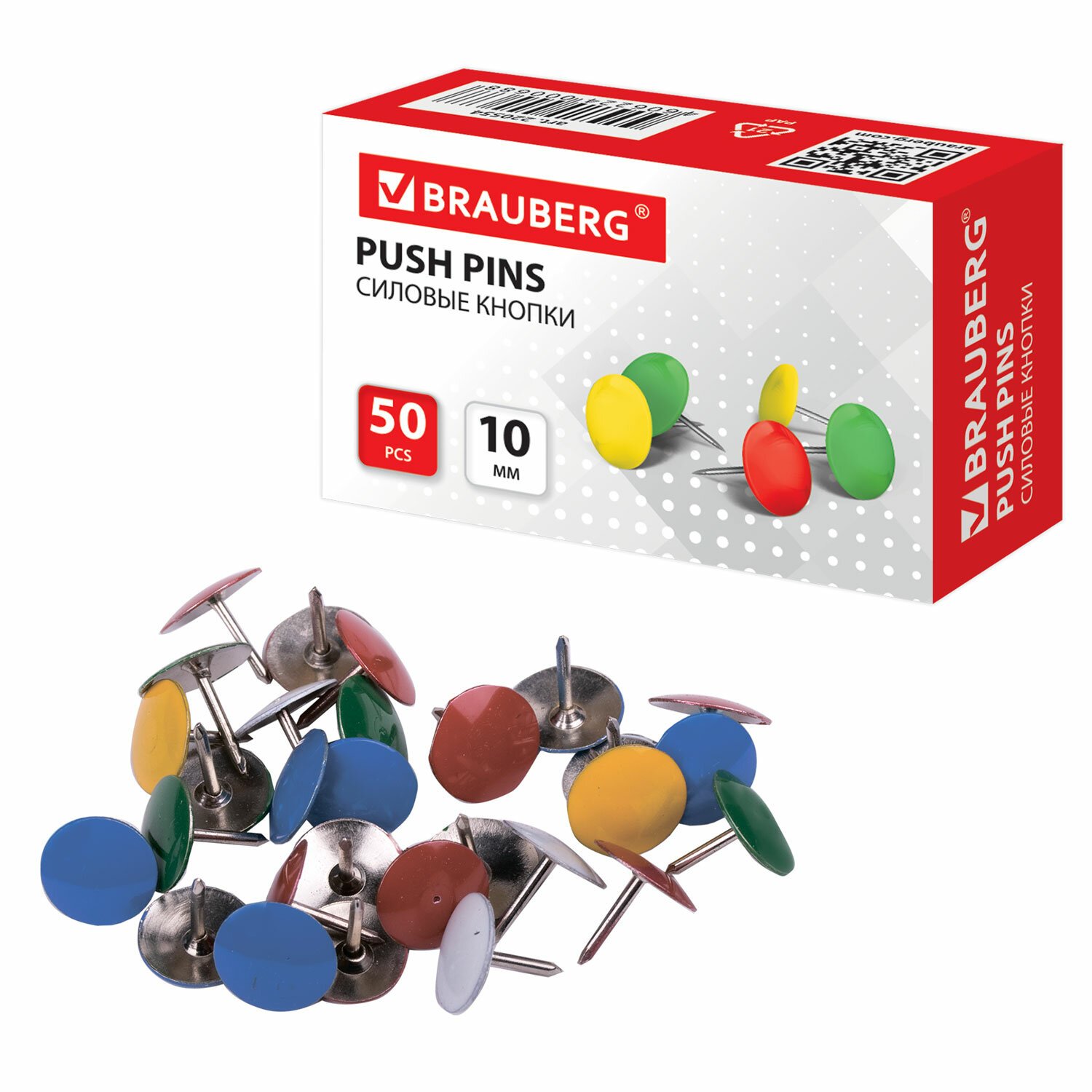 Кнопки канцелярские BRAUBERG, металлические, цветные, 10 мм, 50 шт., в картонной коробке, 220554