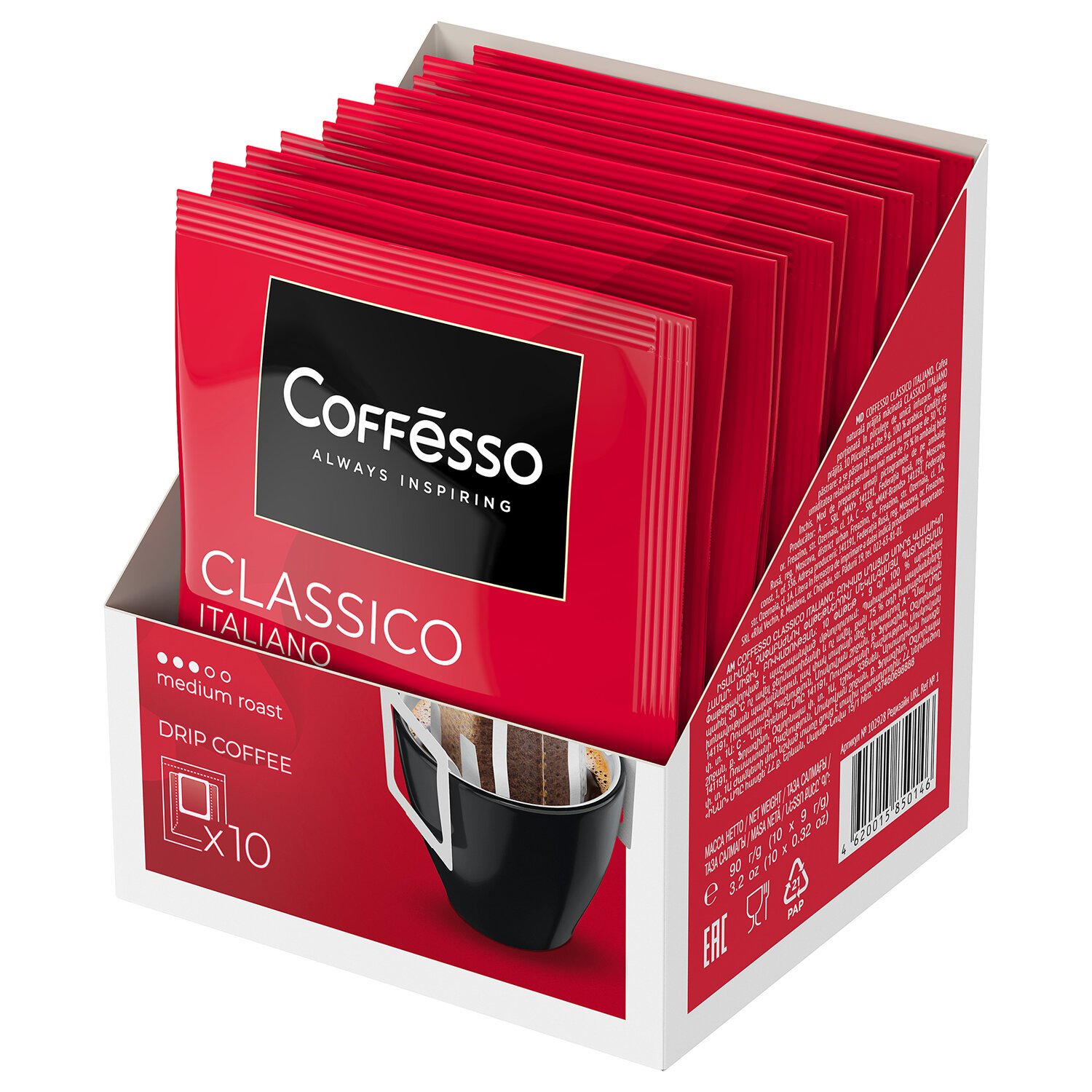 Кофе Coffesso "Classico Italiano" молотый в дрип пакетах, 10 шт по 9г - свежемолотый продукт в формате фильтр-сашете позволяет быстро и просто приготовить насыщенный напиток без лишних хлопот.