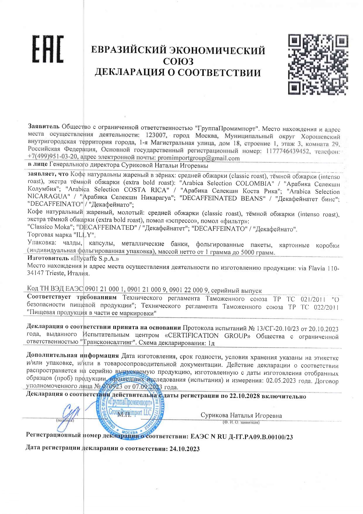 | Фирма-производитель | illicaffe S.p.A.,via Flavia |
