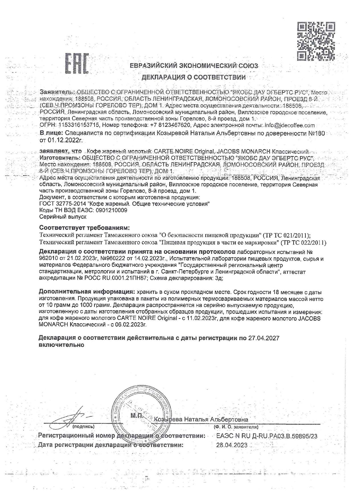 | Фирма-производитель | ООО "Якобс Дау Эгбертс Рус" |