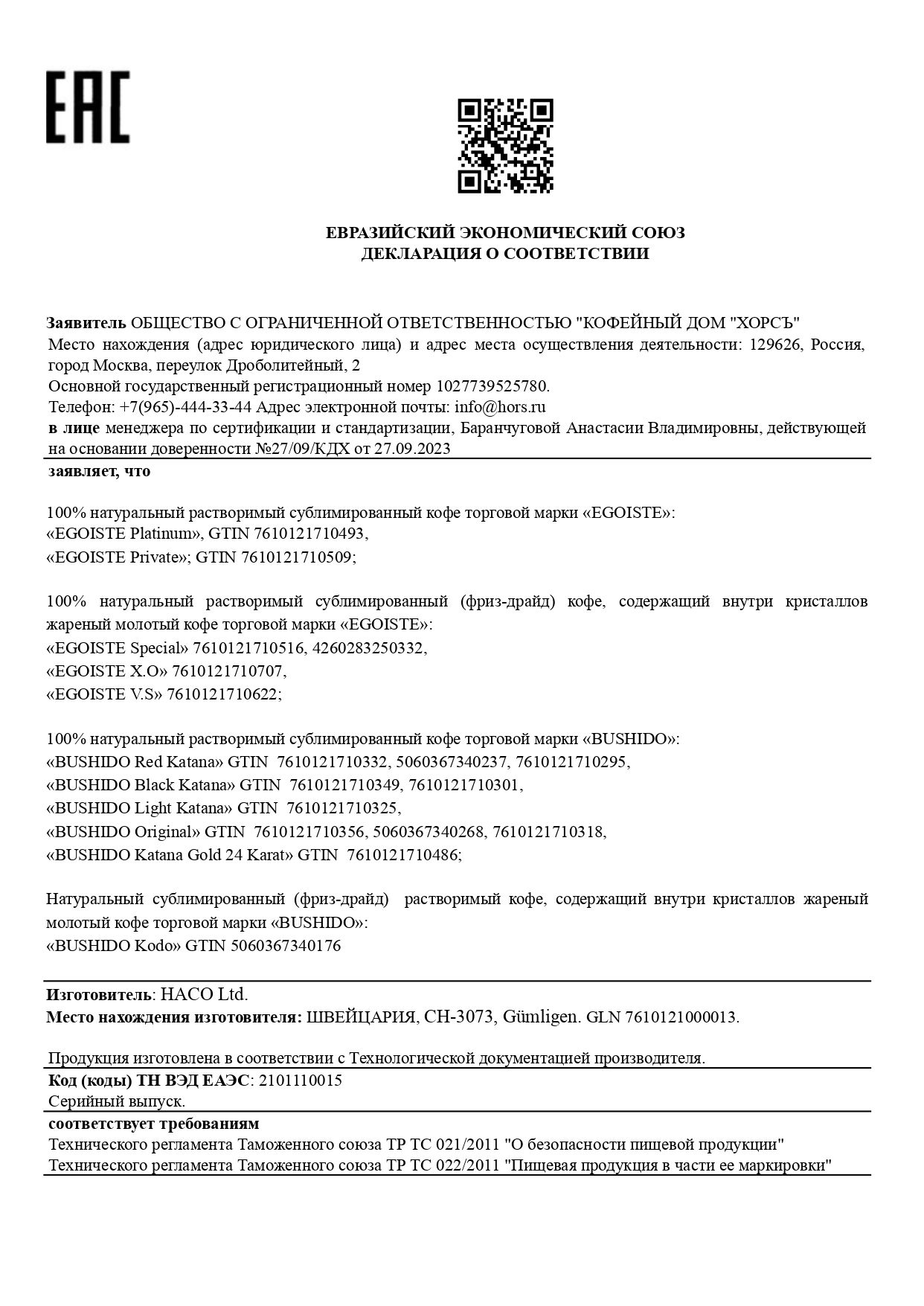 Кофе растворимый BUSHIDO "Red Katana" 100 г, стеклянная банка, сублимированный, ШВЕЙЦАРИЯ, BU10009014