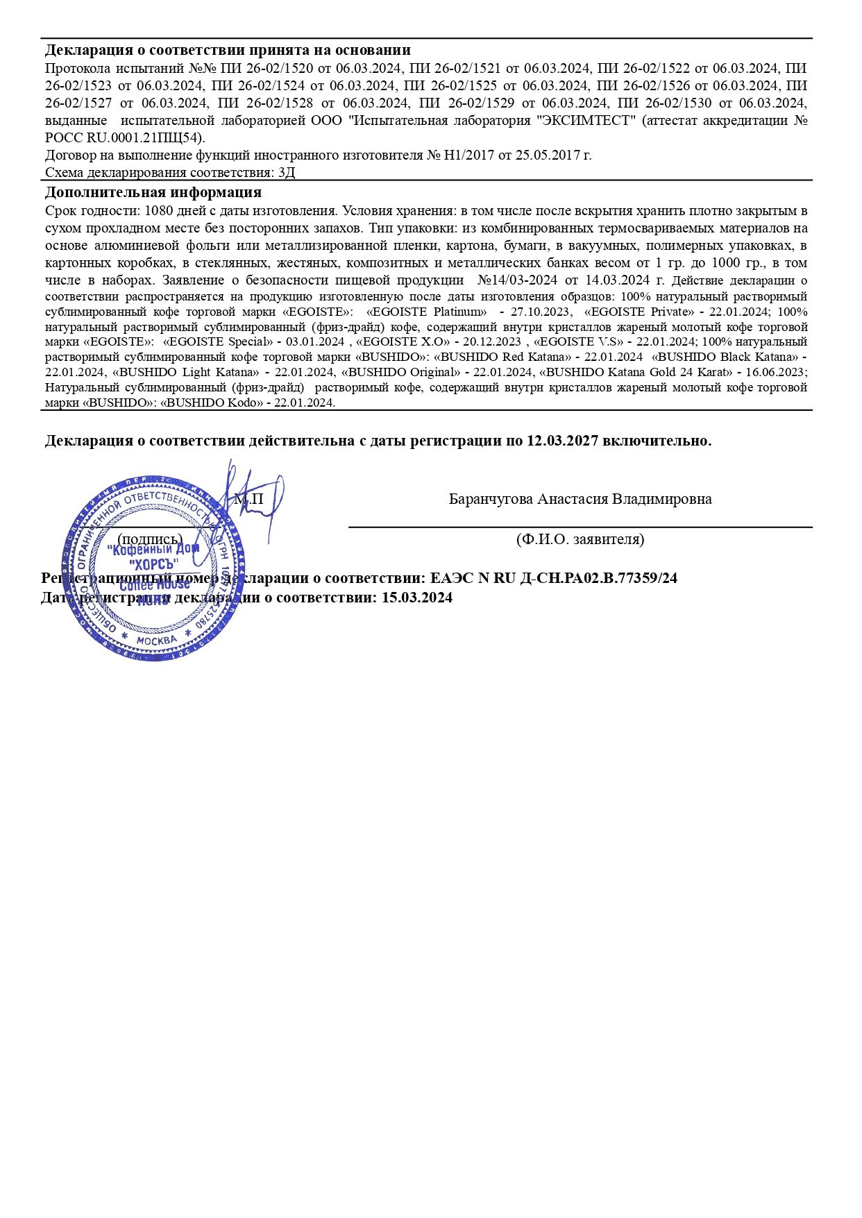 Насыщенный плотный вкус и неповторимый аромат свежезаваренного кофе из отборных зерен "арабика премиум".