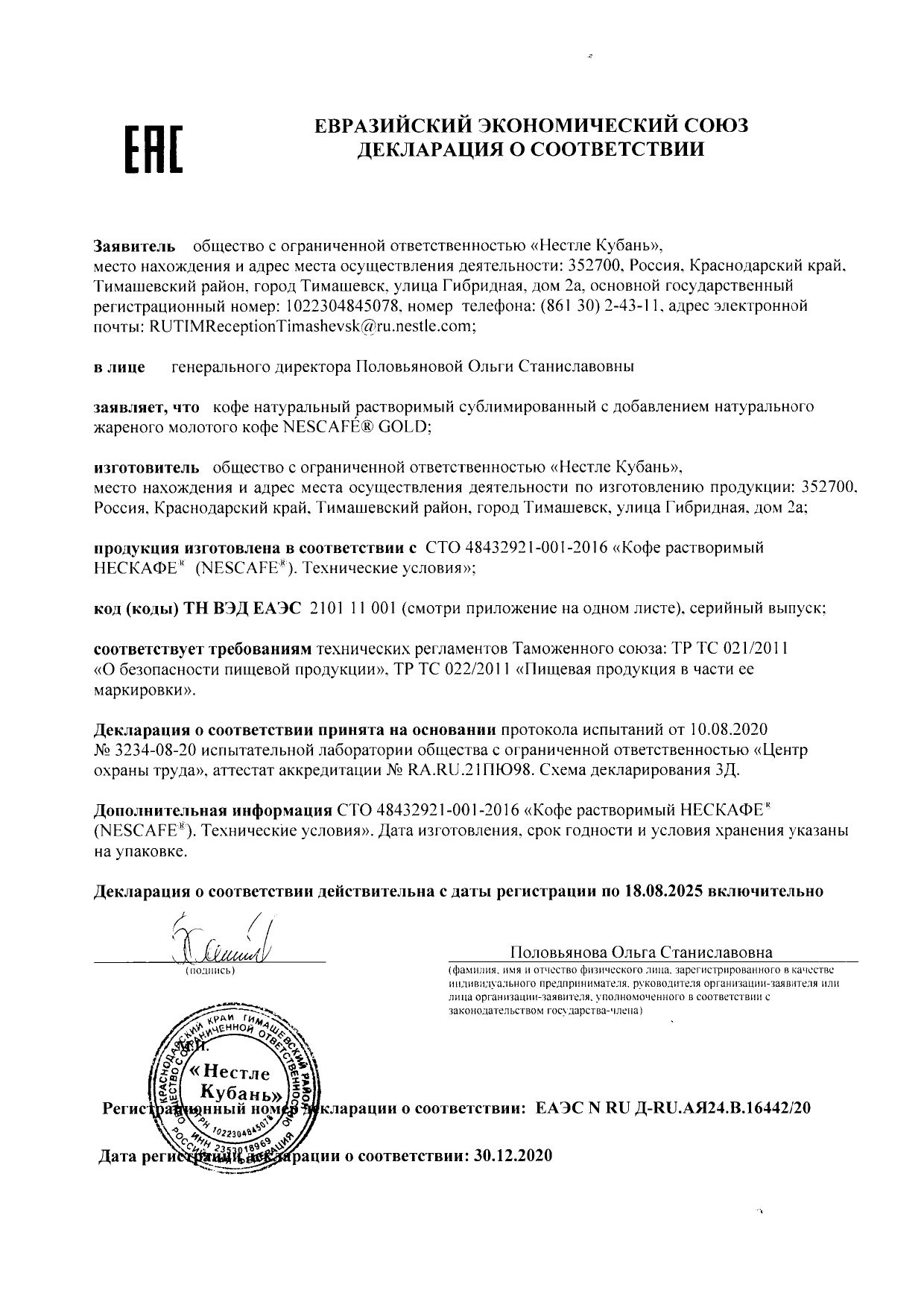 Кофе молотый в растворимом NESCAFE "Gold" 750 г, сублимированный, 12348310