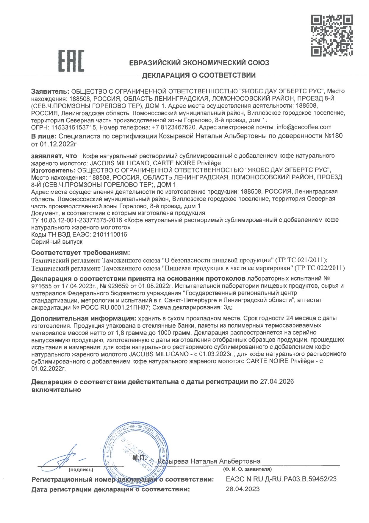Кофе растворимый CARTE NOIRE "Privilege" 95 г, стеклянная банка, сублимированный, 8051365