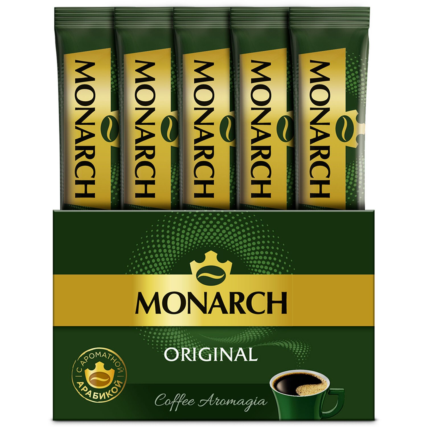 Благодаря искусному сочетанию отборных кофейных зёрен и глубокой обжарке MONARCH "Original" отличается богатым вкусом и притягательным ароматом. Кофе в стиках удобно брать в дорогу, чтобы побаловать себя прекрасным бодрящим напитком.