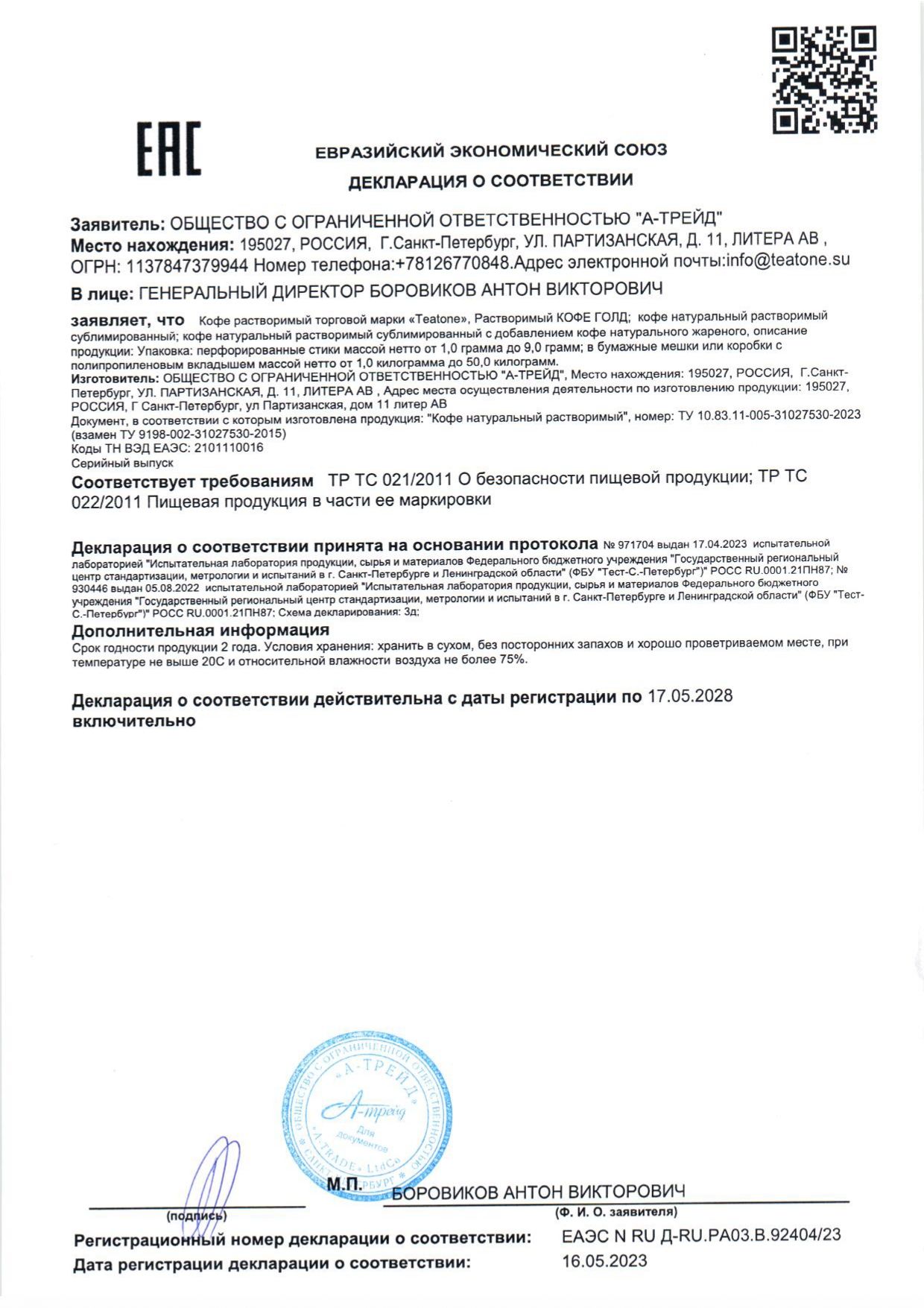 | Порционный в пакетиках | да |