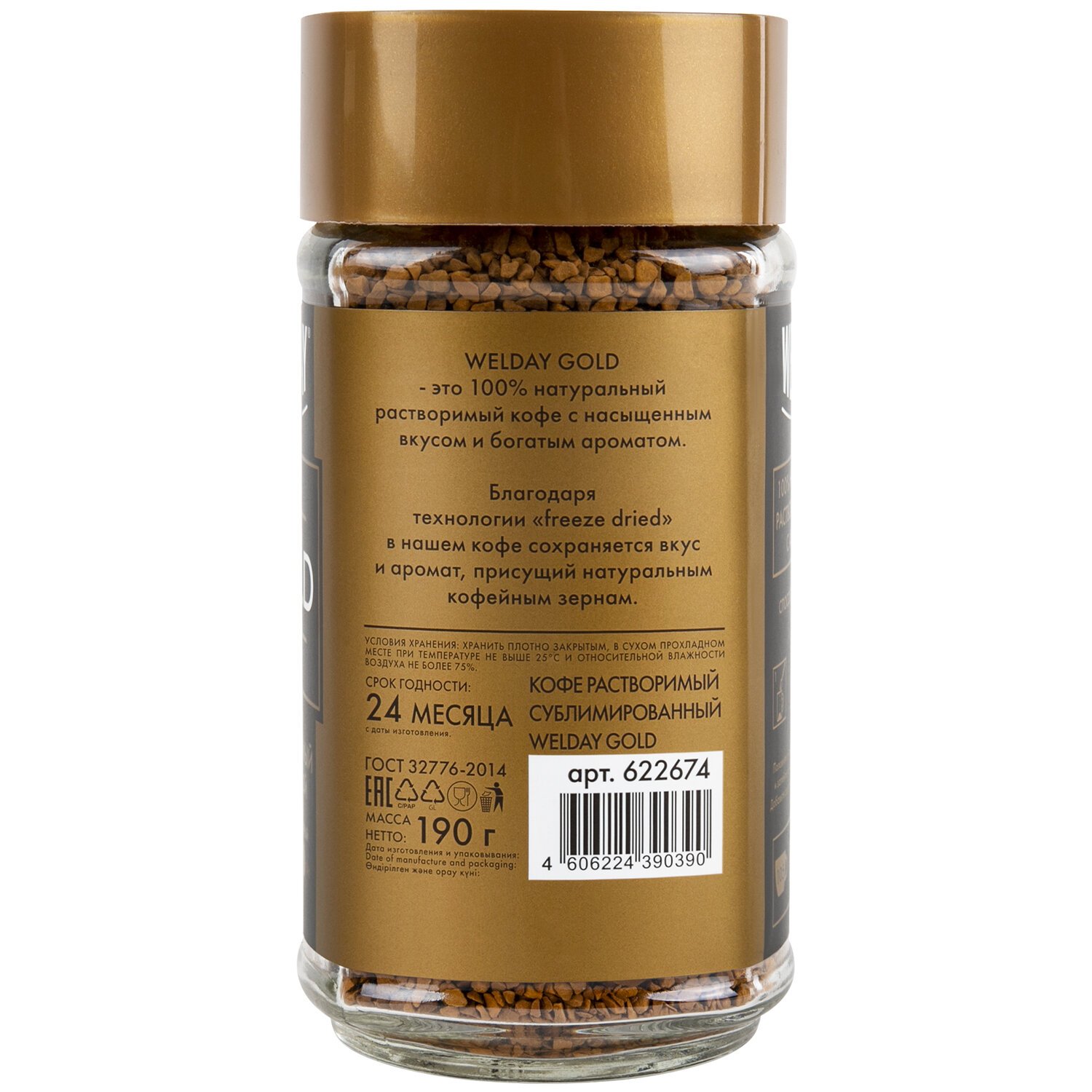Кофе растворимый WELDAY (ВЭЛДЭЙ) "GOLD" 190 г, стеклянная банка, сублимированный, 622674