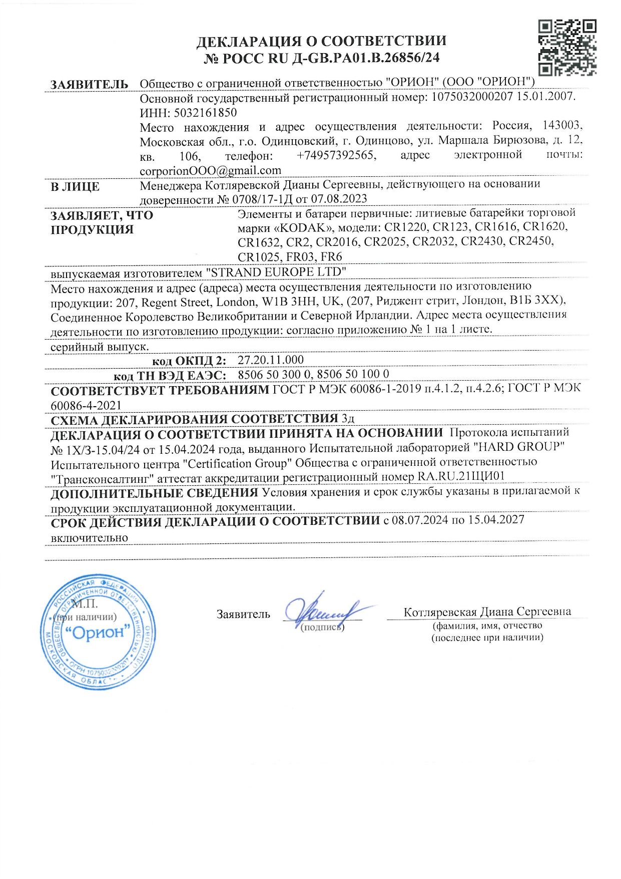 | Фирма-производитель | ООО МАЙ |