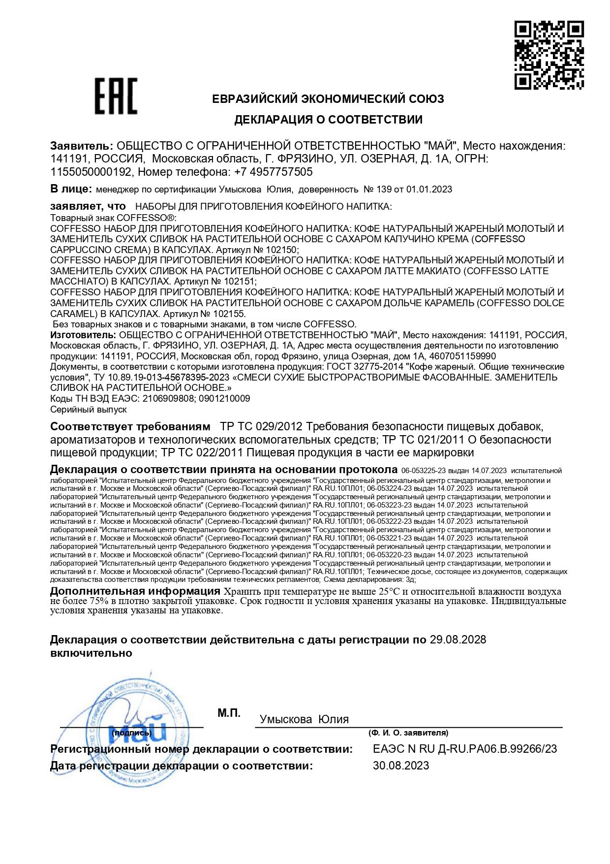 | Фирма-производитель | ООО МАЙ |