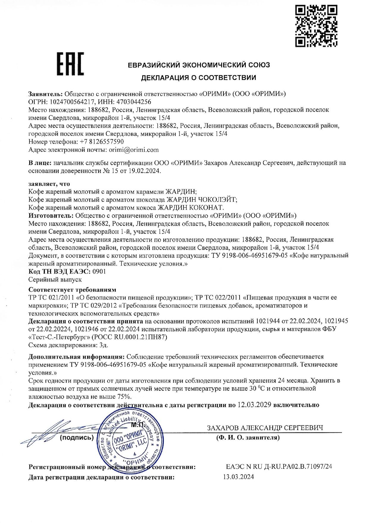 Состав: кофе жареный молотый, ароматизатор "Кокос".