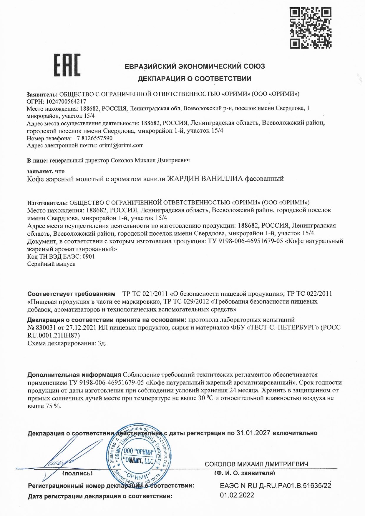 Кофе в капсулах JARDIN "Vanillia" для кофемашин Nespresso, 10 порций, 1355-10