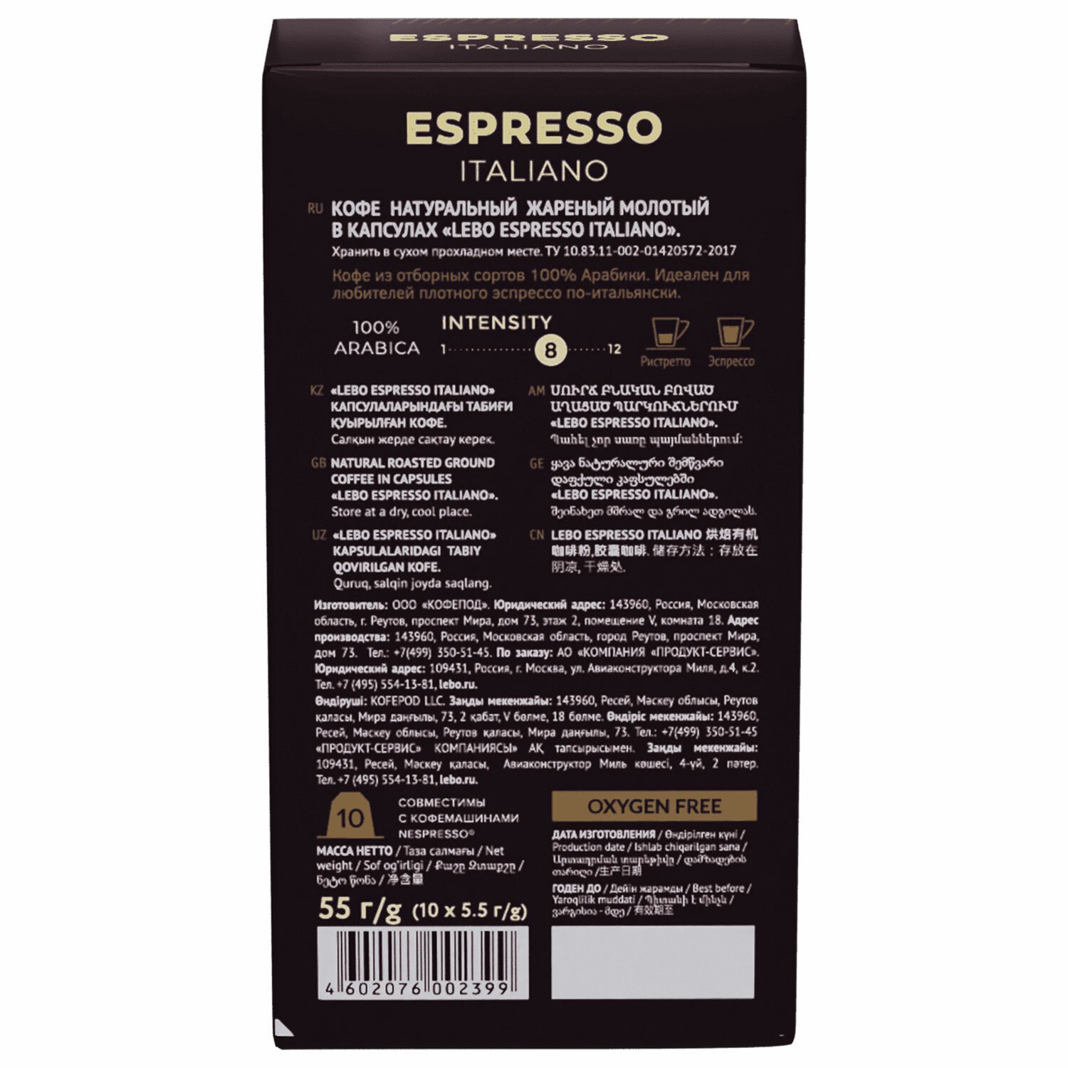 Кофе в капсулах LEBO "Espresso Italiano" для кофемашин Nespresso, 10 порций