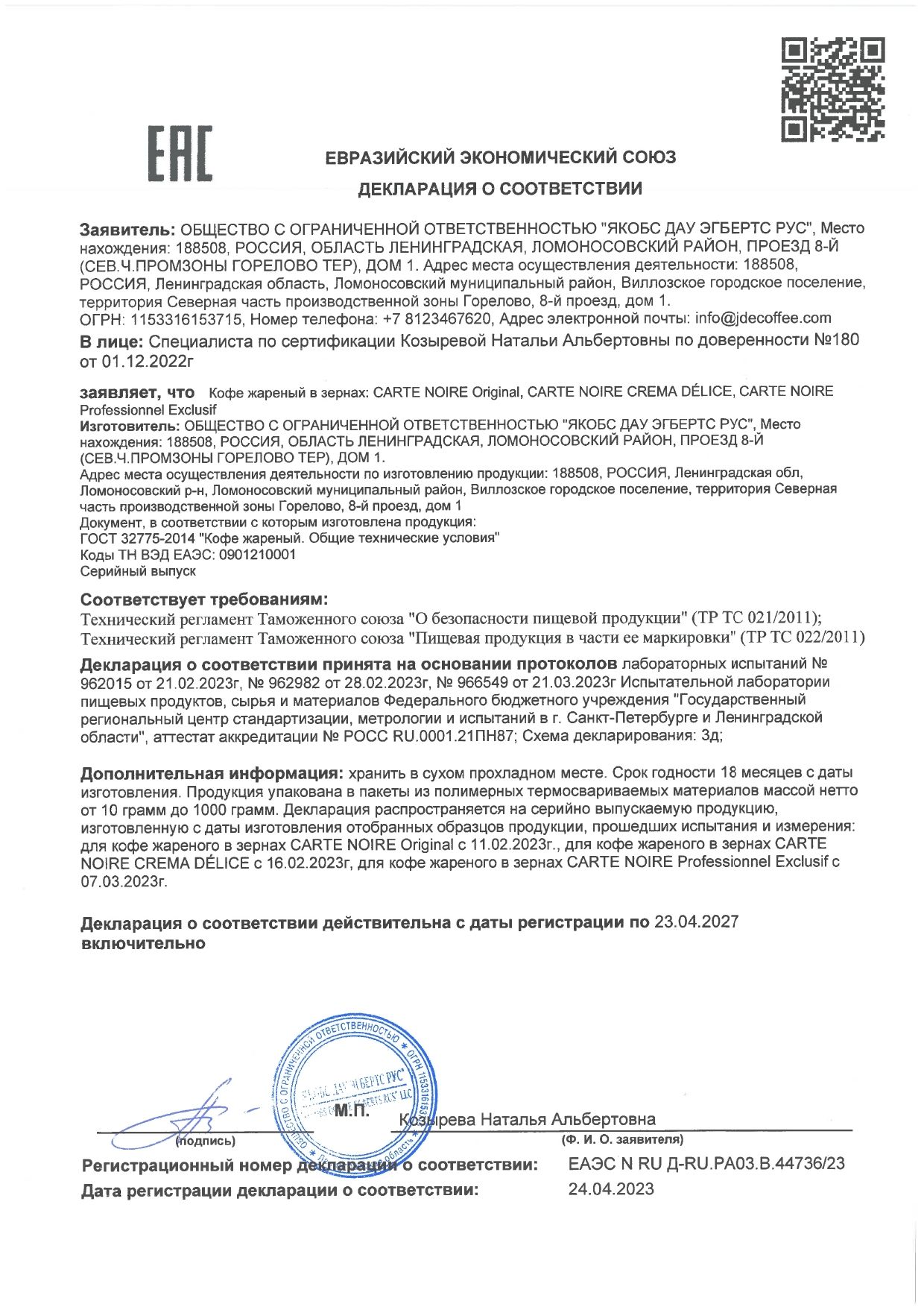 | Фирма-производитель | ООО "Якобс Дау Эгбертс Рус" |