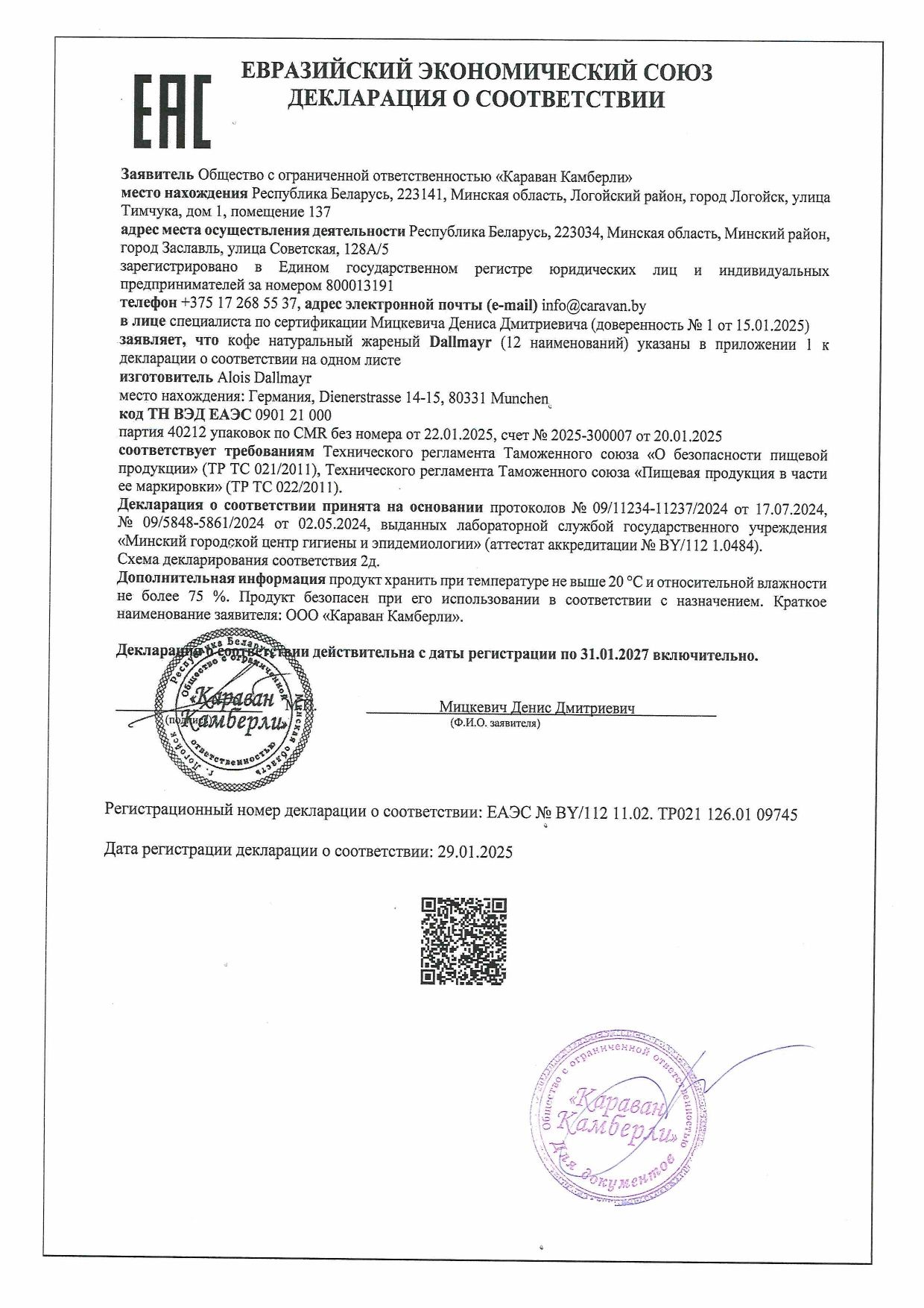 | Фирма-производитель | Alois Dallmayr Kaffee oHG |