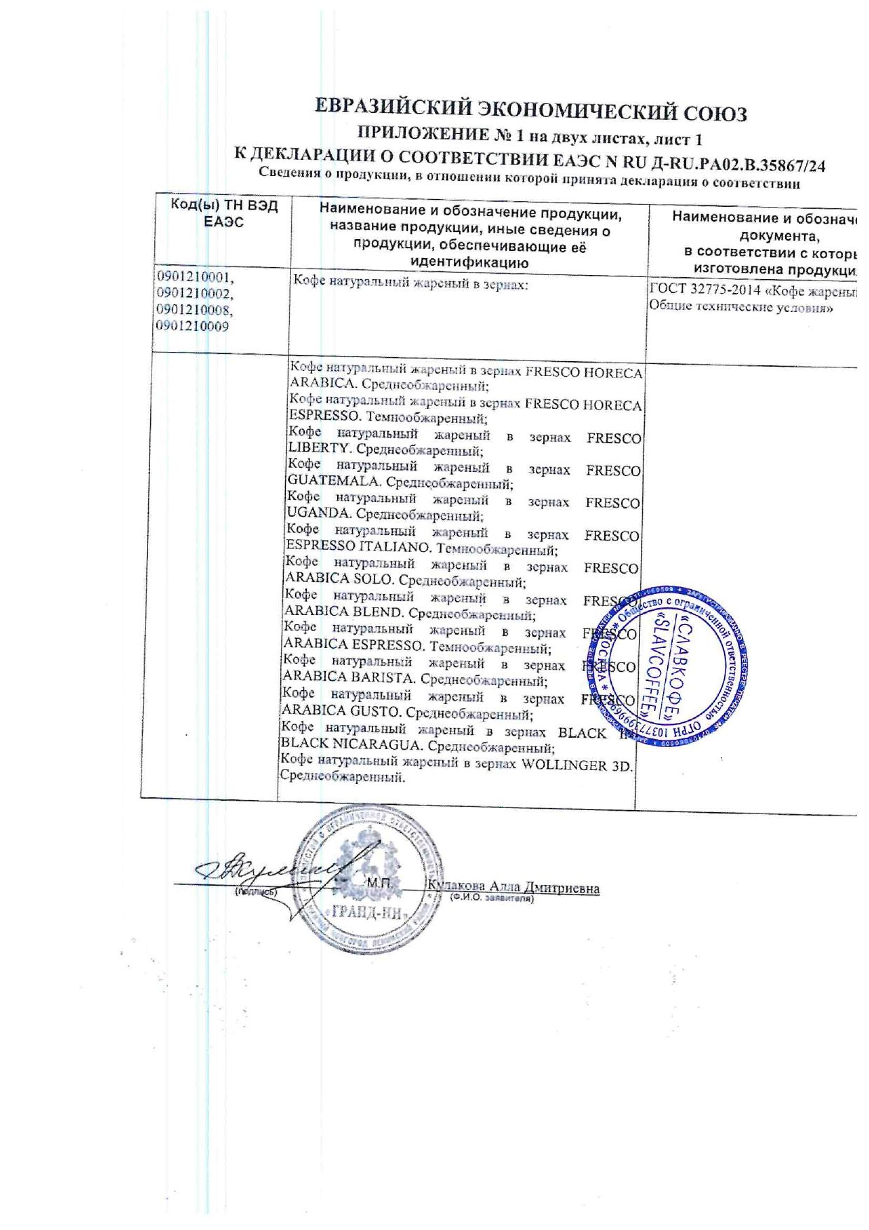 Состав: кофе натуральный жареный в зернах.