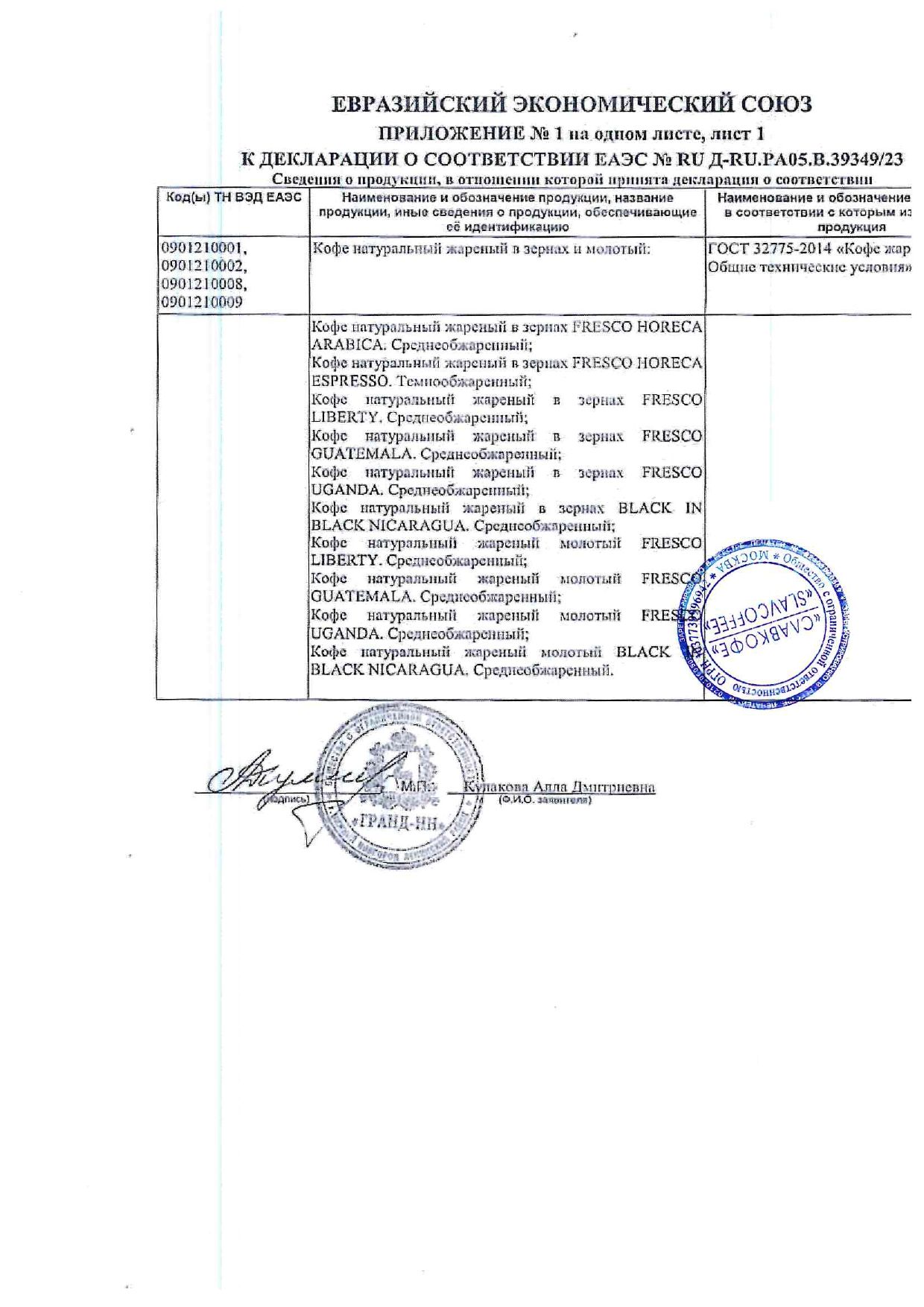 Условия хранения: хранить кофе в плотно закрытой упаковке при температуре не выше 20 °C и относительной влажности не более 75%.