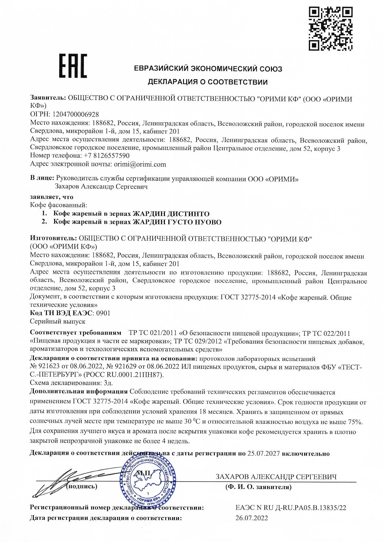 | Фирма-производитель | Орими Трейд |
