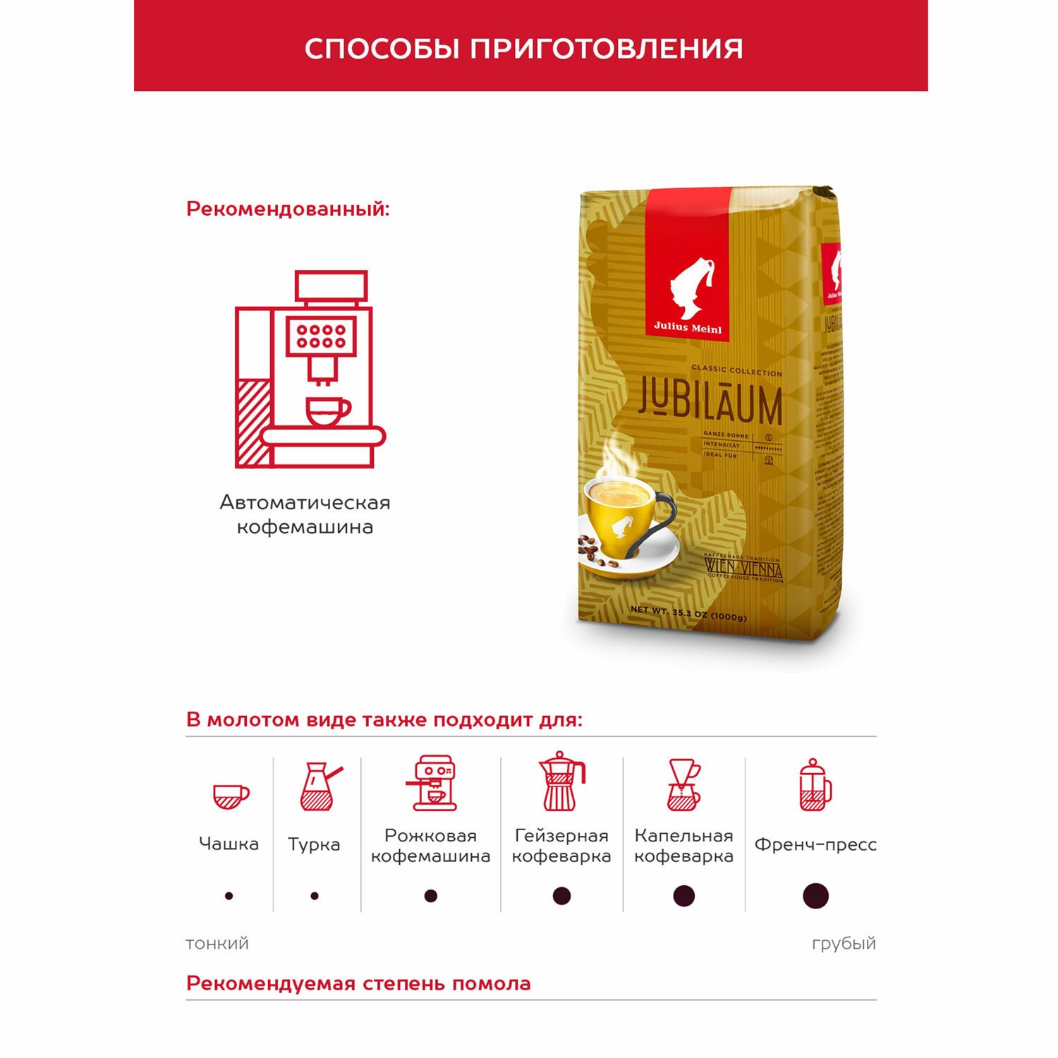 Кофе в зернах Jubilaum (Юбилейный) – премиальный бленд кофе настоящей венской обжарки, характеризуется богатым ароматом цитрусовых и цветочных оттенков, а также мягким вкусом. Он был создан к 100-летию со дня рождения JULIUS MEINL в 1962 году.