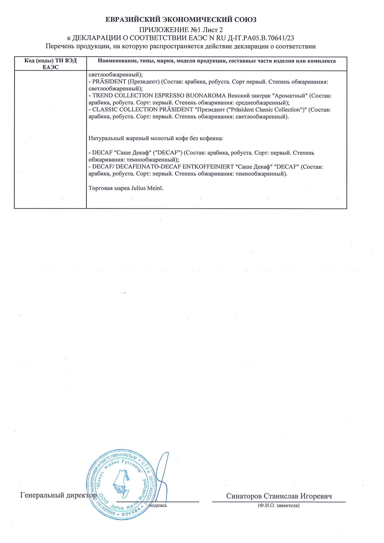Кофе в зернах JULIUS MEINL "Prasident Classic Collection" 1 кг, ИТАЛИЯ, 89933
