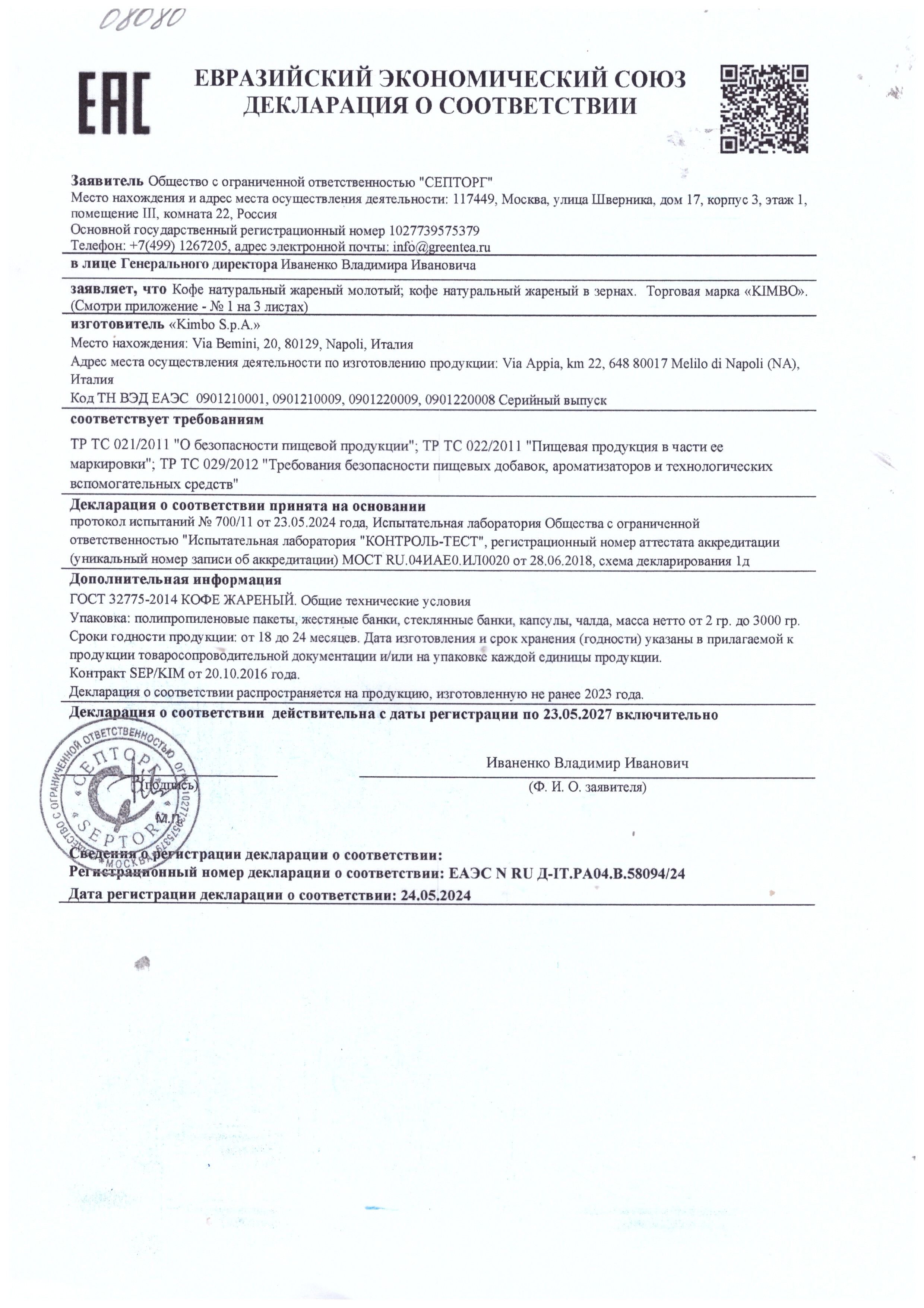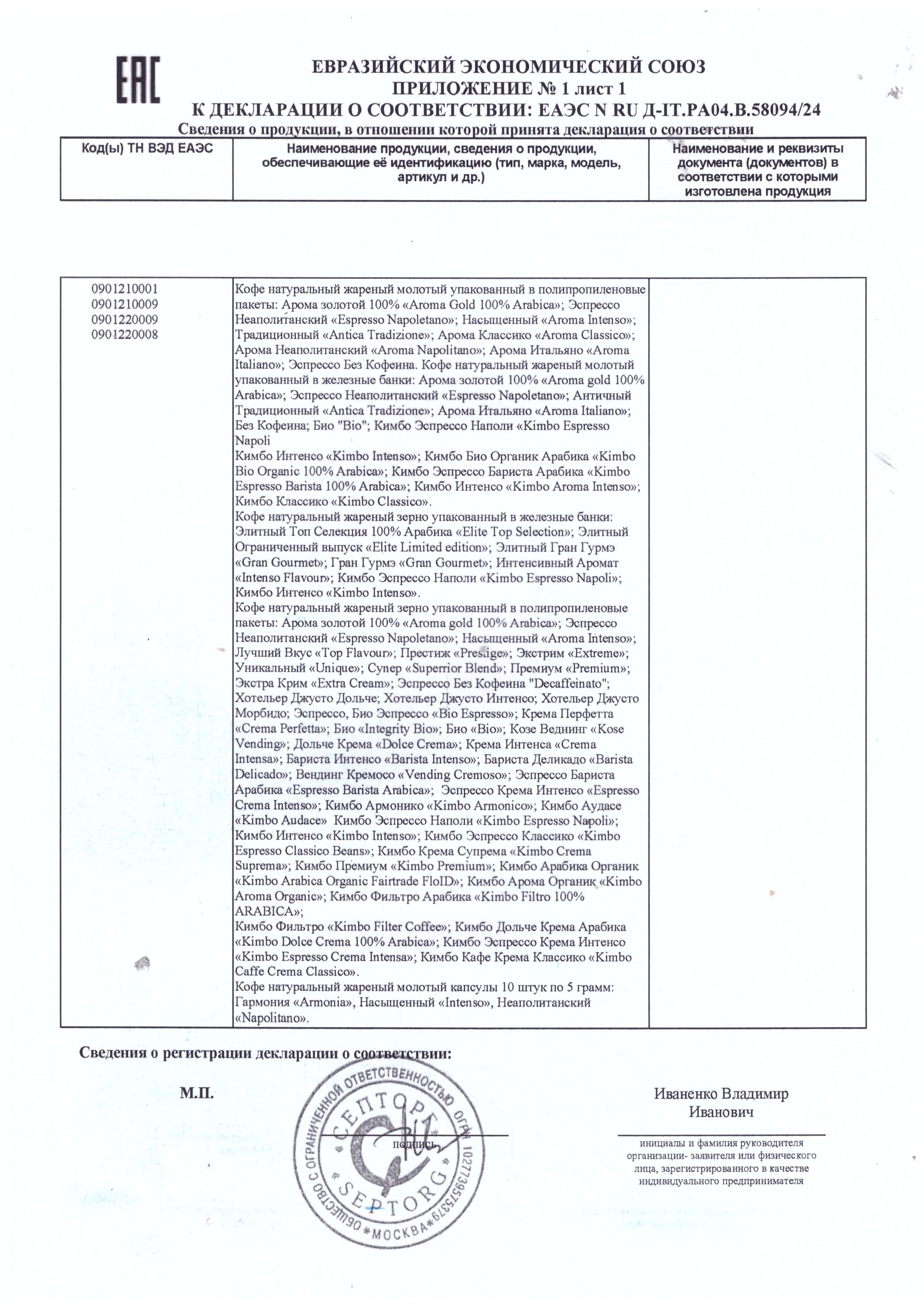 | Фирма-производитель | Kimbo S.p.A. |