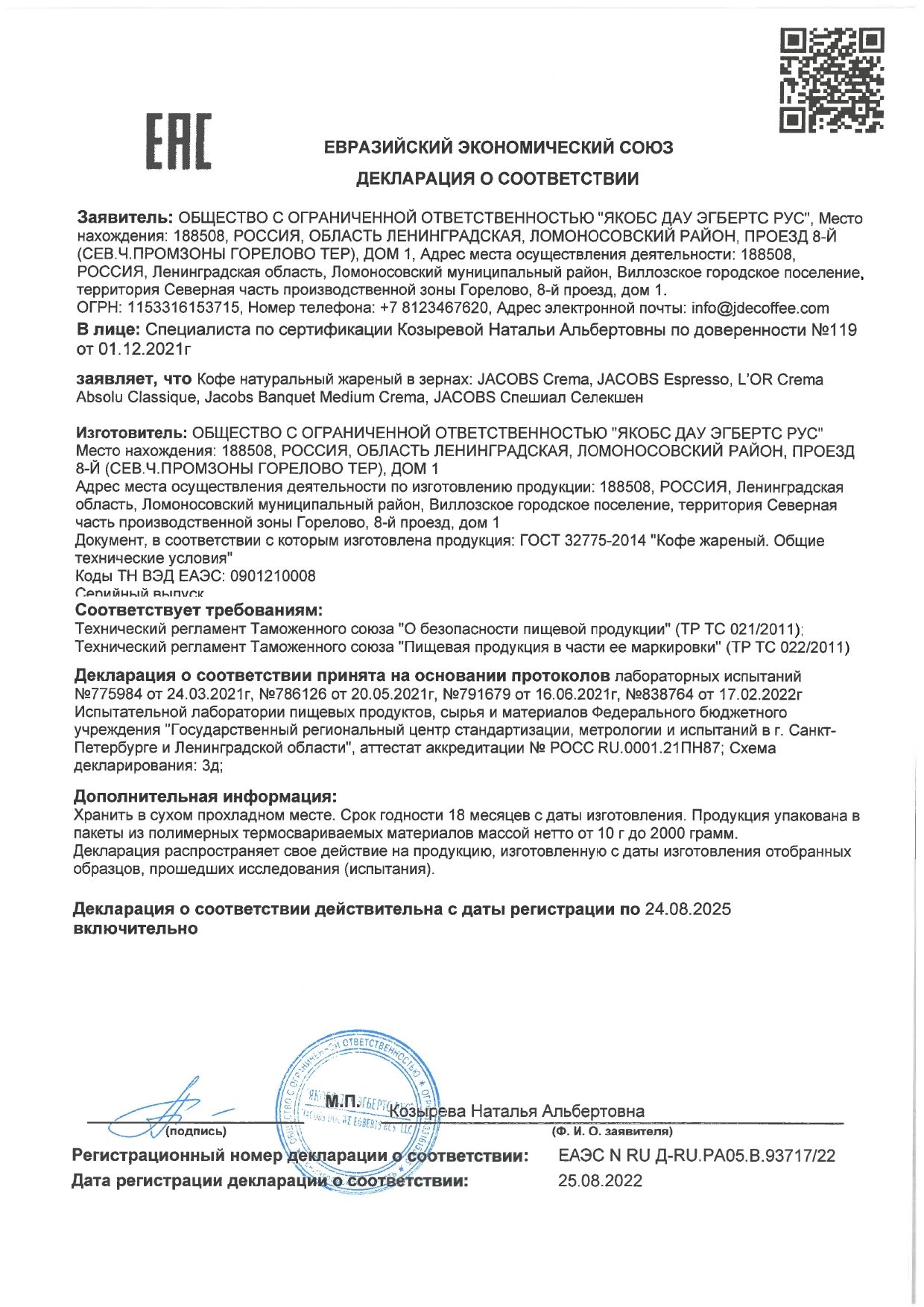 | Фирма-производитель | ООО "Якобс Дау Эгбертс Рус" |