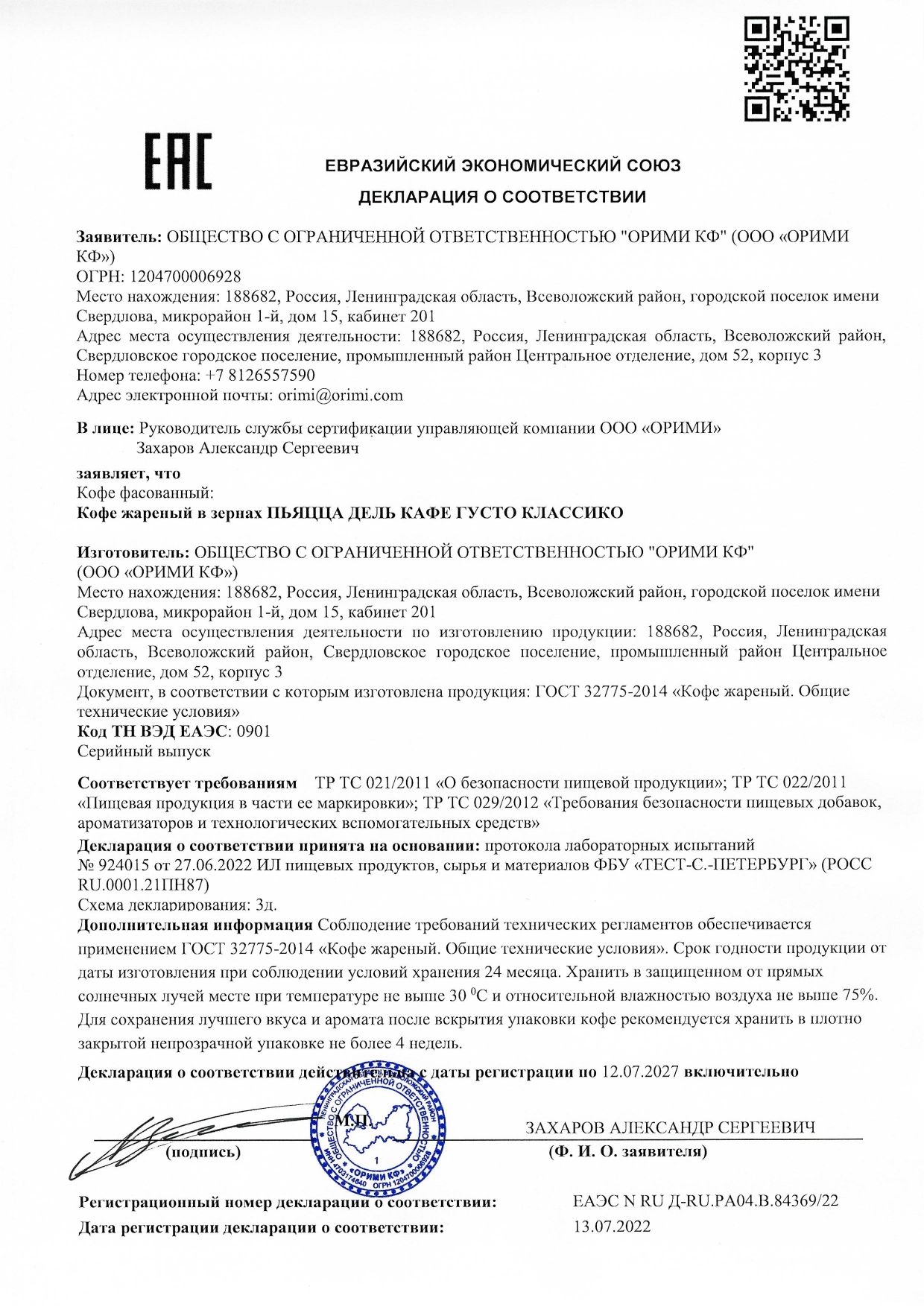 | Фирма-производитель | Орими Трейд |