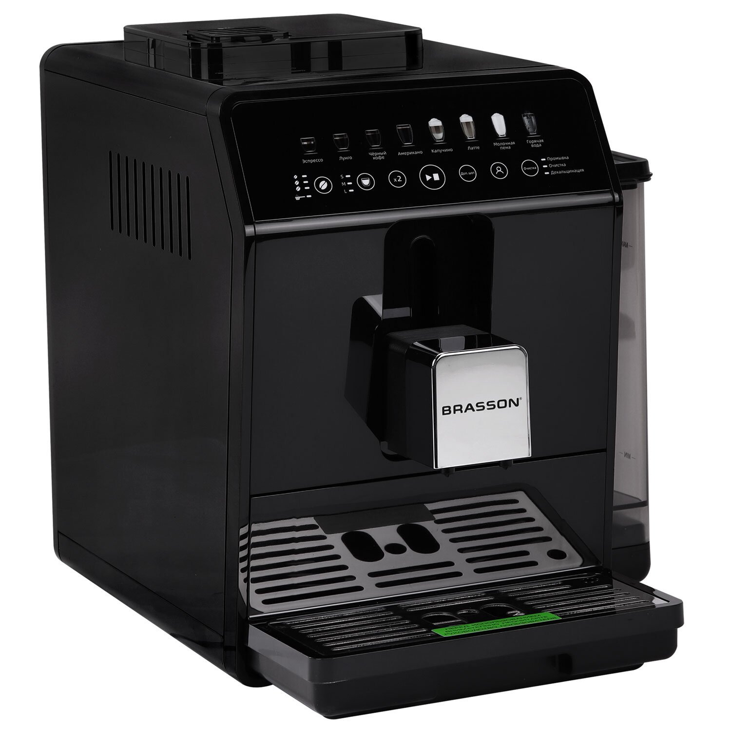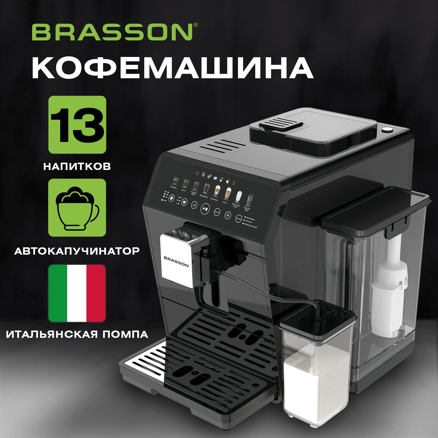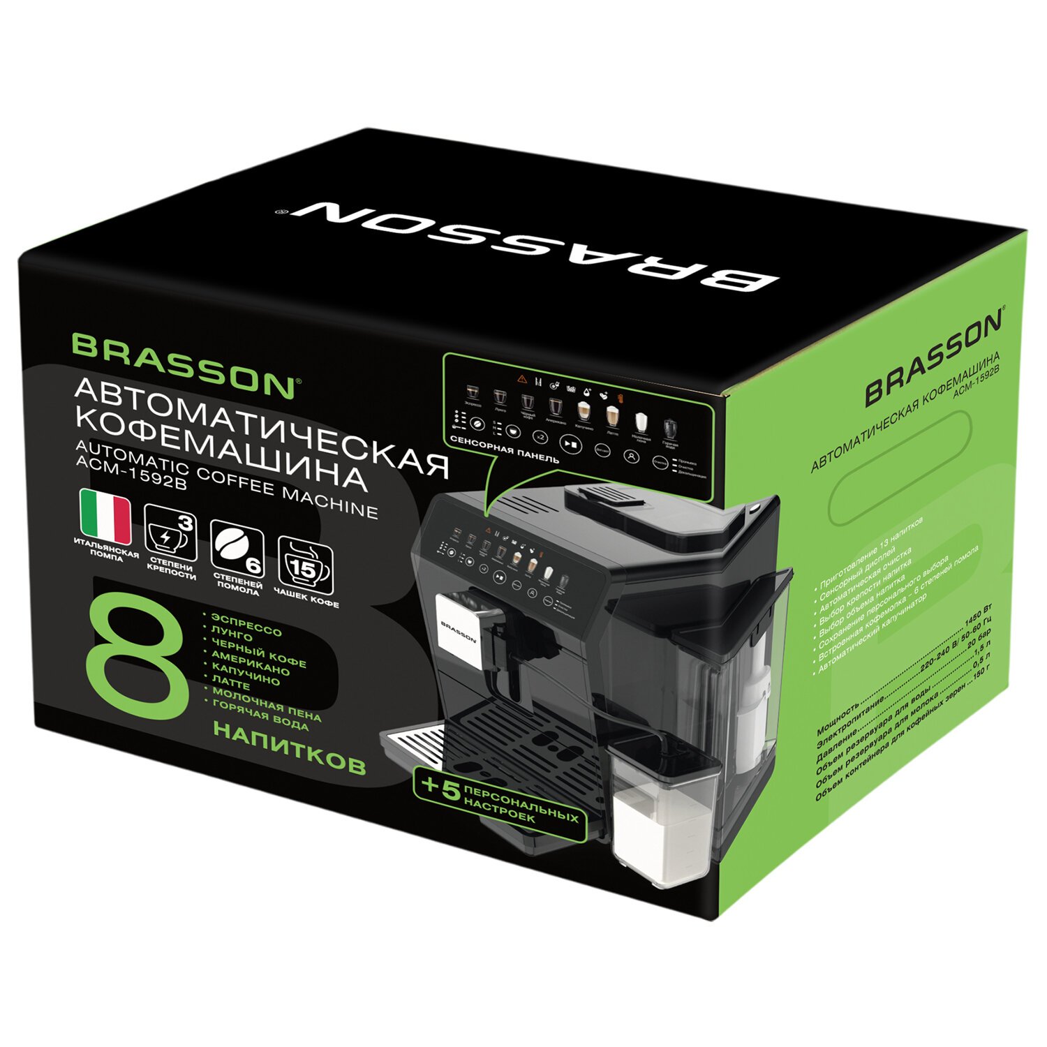 Кофемашина автоматическая BRASSON ACM-1592A, дисплей, автокапучинатор,6 напитков, итальянская помпа, выбор крепости, 1450 Вт, 20 бар, 457886