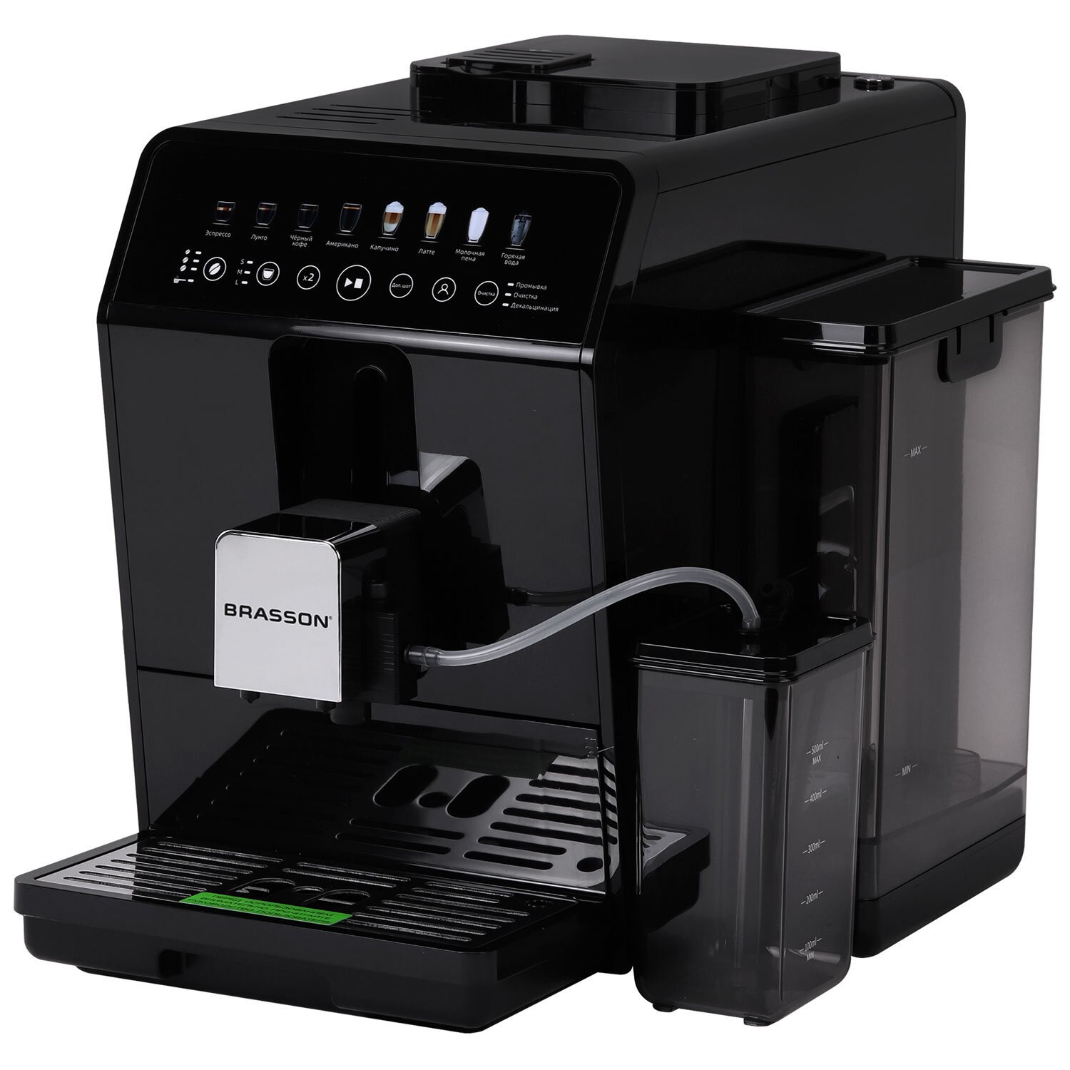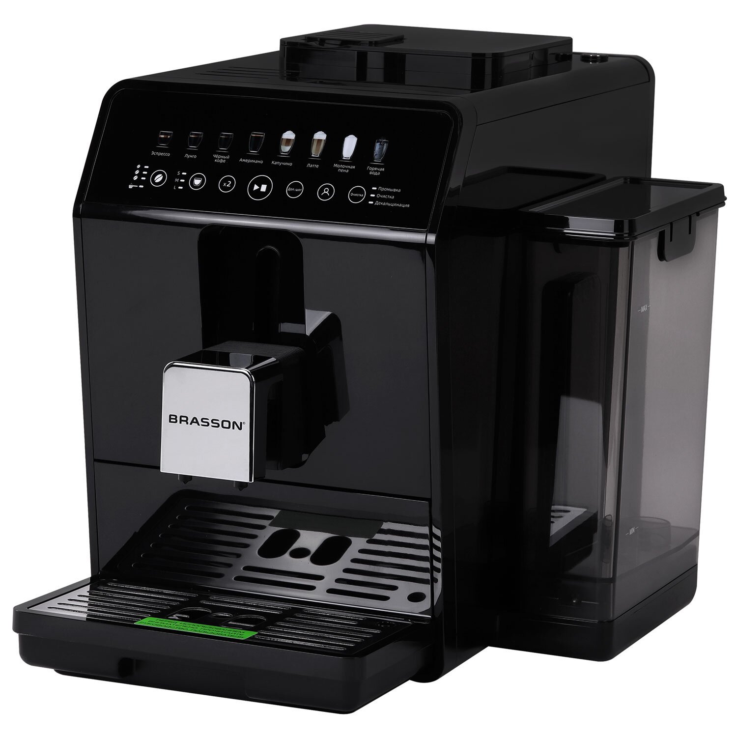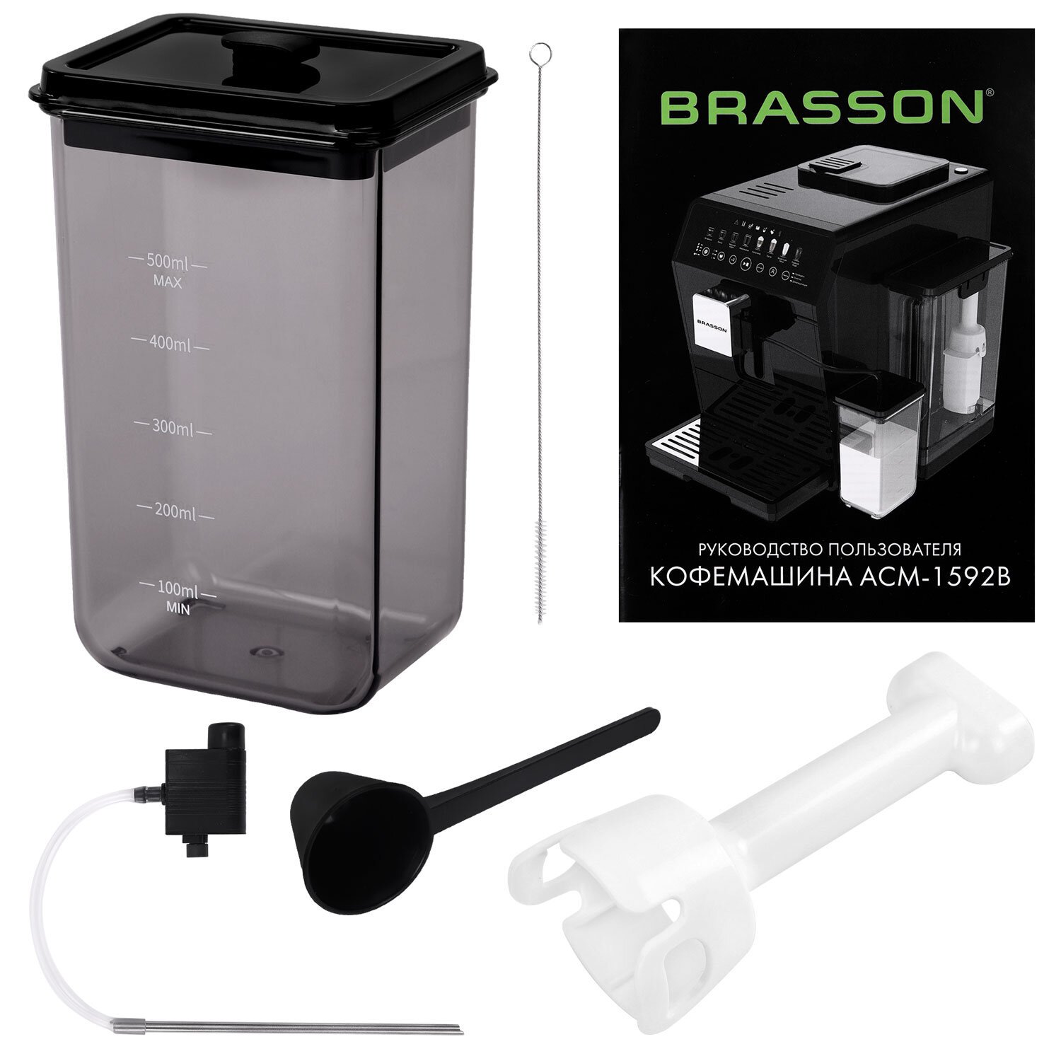 Кофемашина автоматическая BRASSON ACM-1592A, дисплей, автокапучинатор,6 напитков, итальянская помпа, выбор крепости, 1450 Вт, 20 бар, 457886