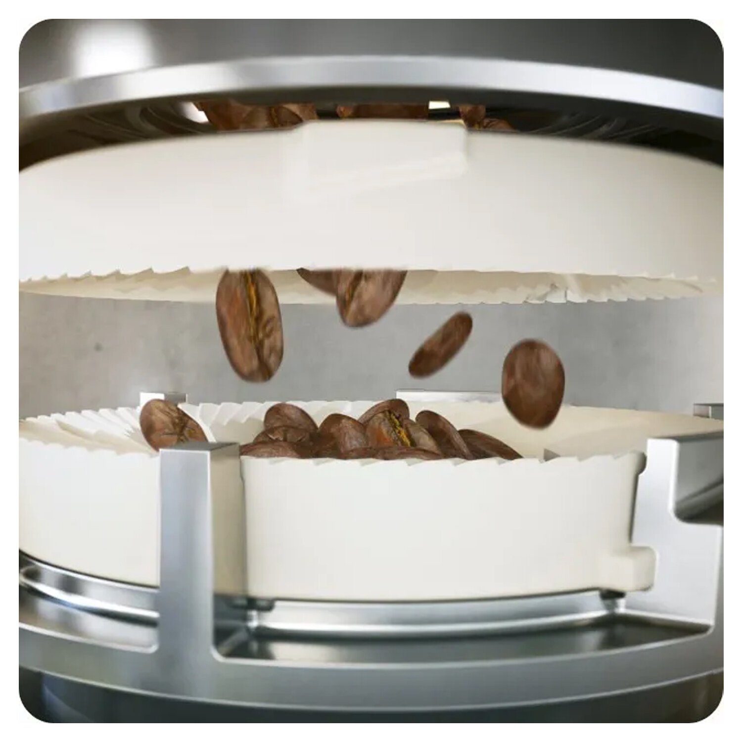 Сохраните аромат кофейных зерен. Герметичная конструкция нового типа сохраняет свежесть и аромат кофейных зерен, а также делает работу жерновов менее шумной.