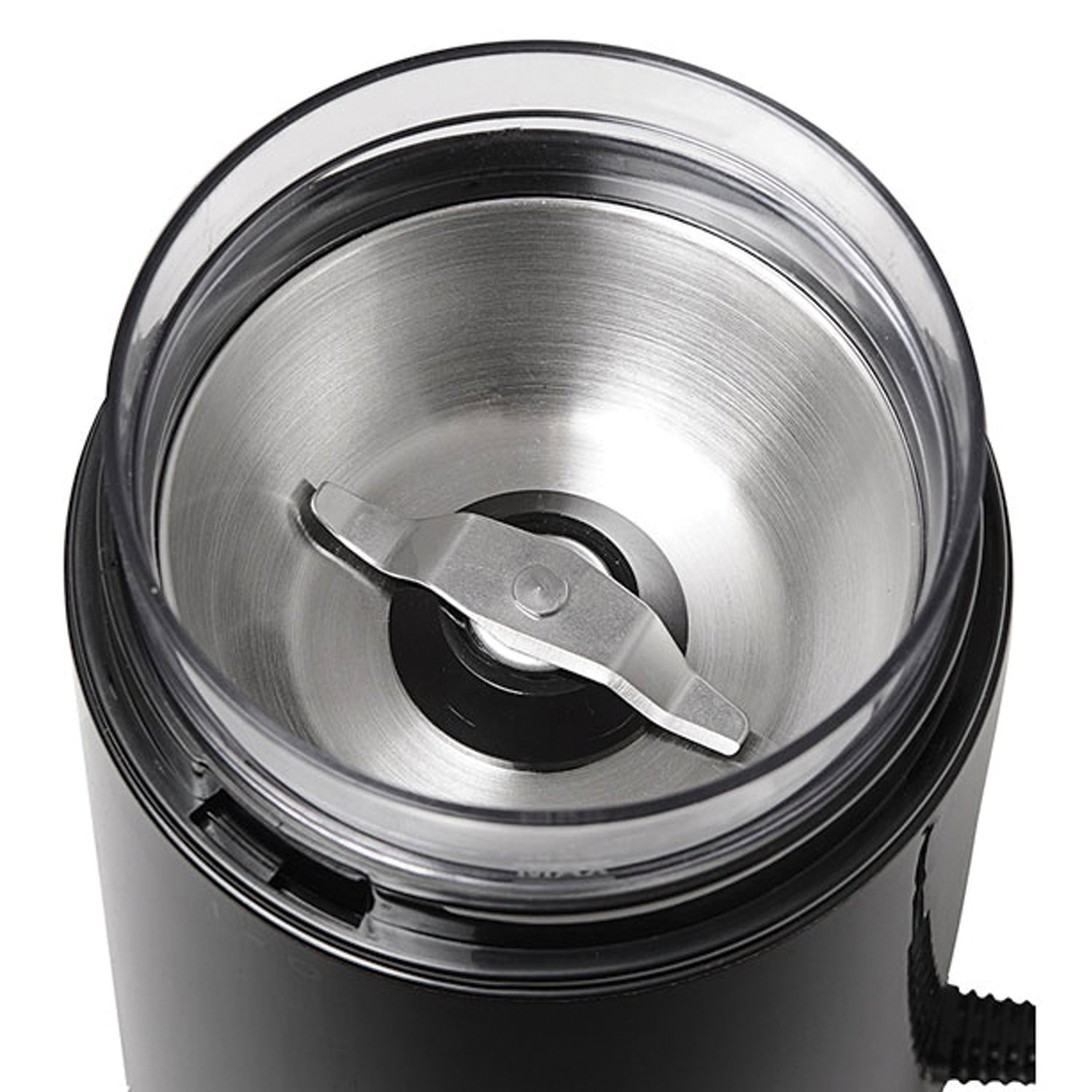 Для измельчения используется ротационный нож. Он сделан из нержавеющей стали, что обеспечивает его надежность и долгий срок службы. За раз в представленную кофемолку можно загрузить до 60 г зерен. Степень помола регулируется за счет длительности работы устройства. Для безопасности и удобства использования кофемолка не включается, когда крышка открыта.