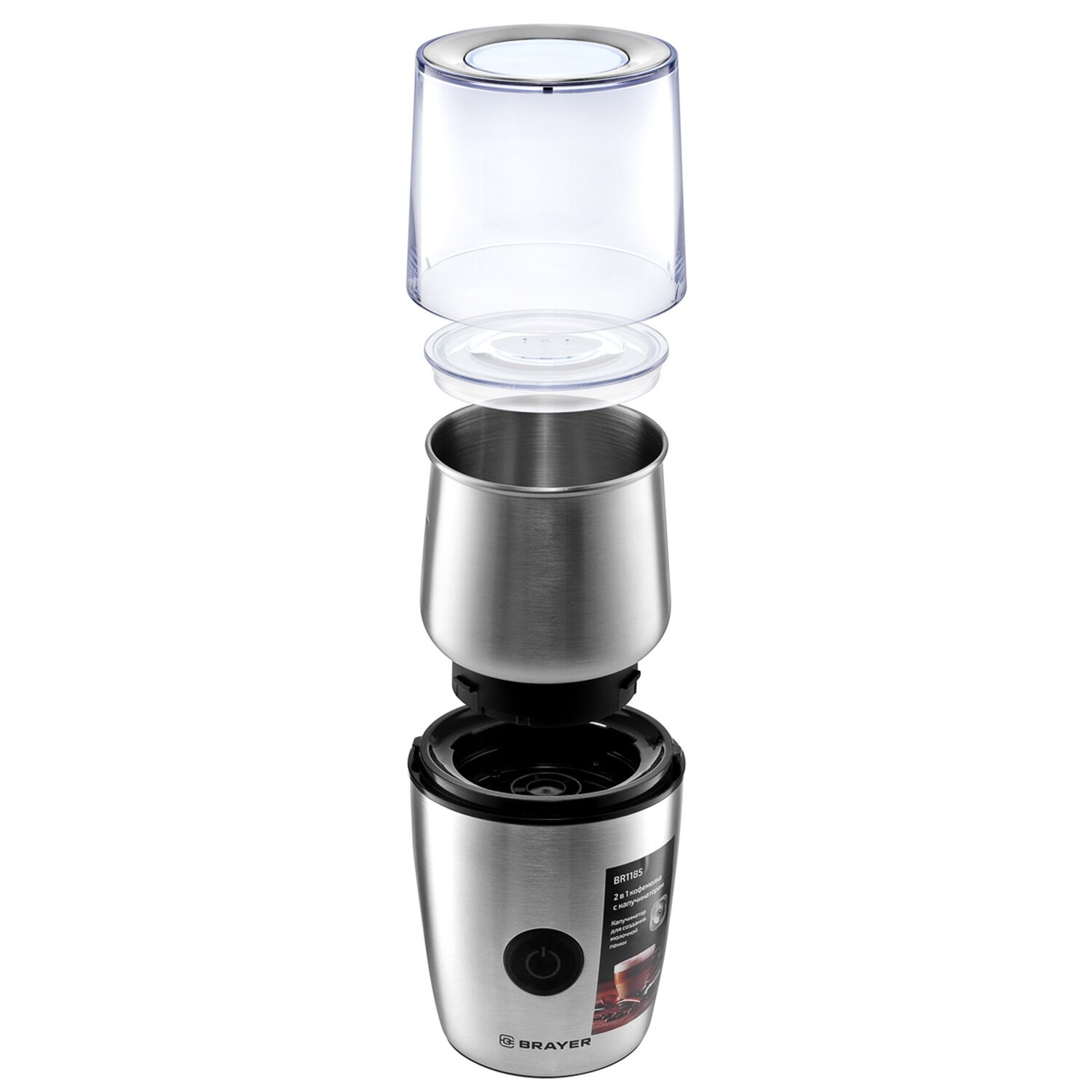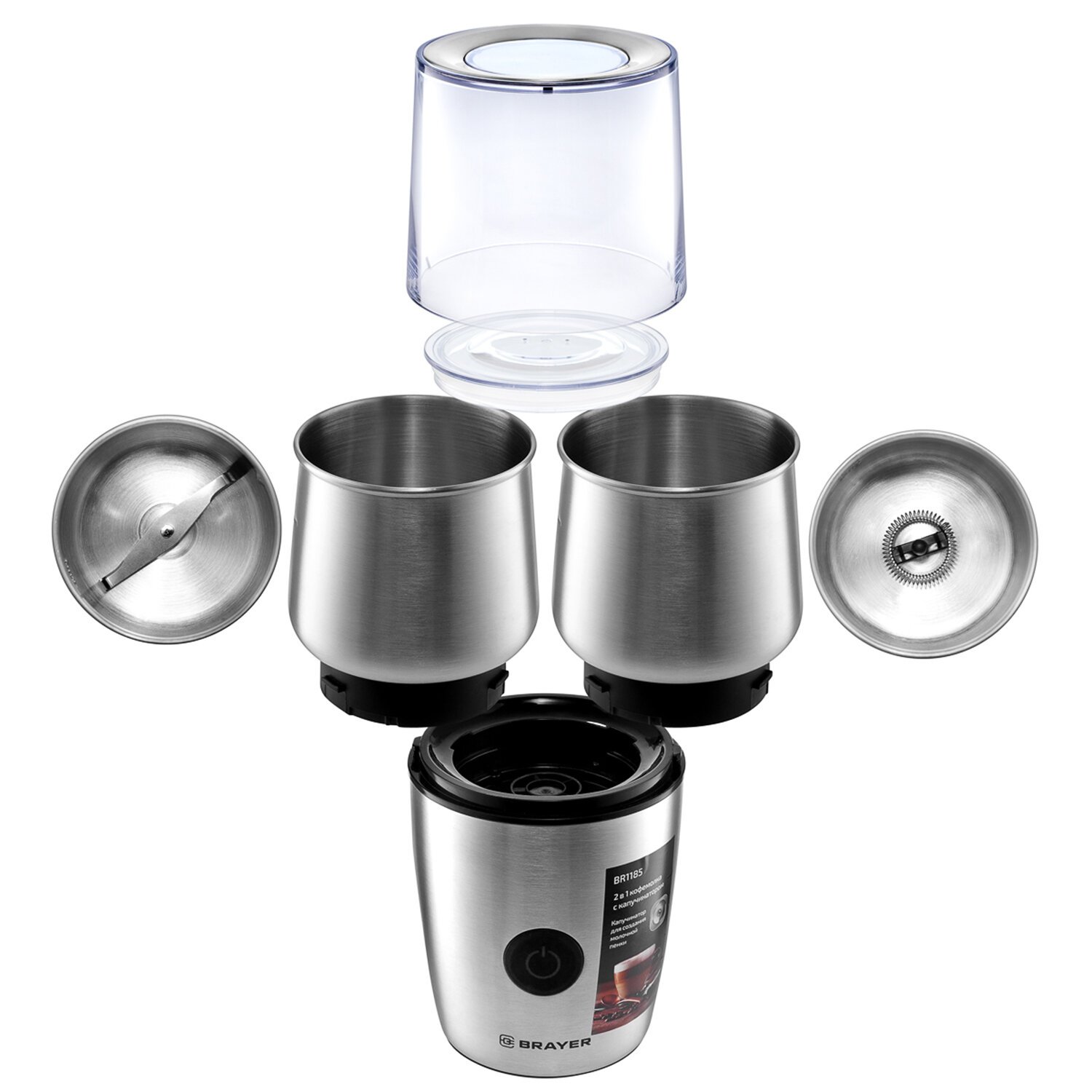 Кофемолка с капучинатором BRAYER BR1185, 200 Вт, вместимость 100 г, сталь