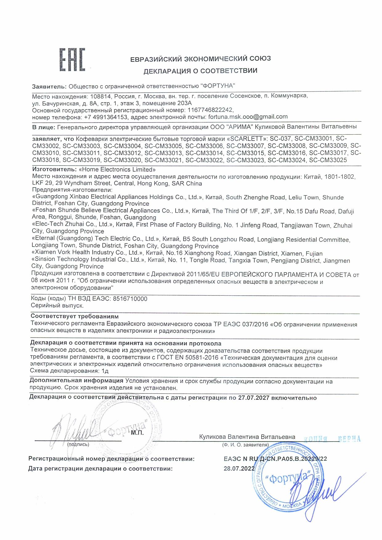 Кофеварка капельная SCARLETT SC-CM33011, 750 Вт, объем 1,25 л, подогрев, пластик, черный
