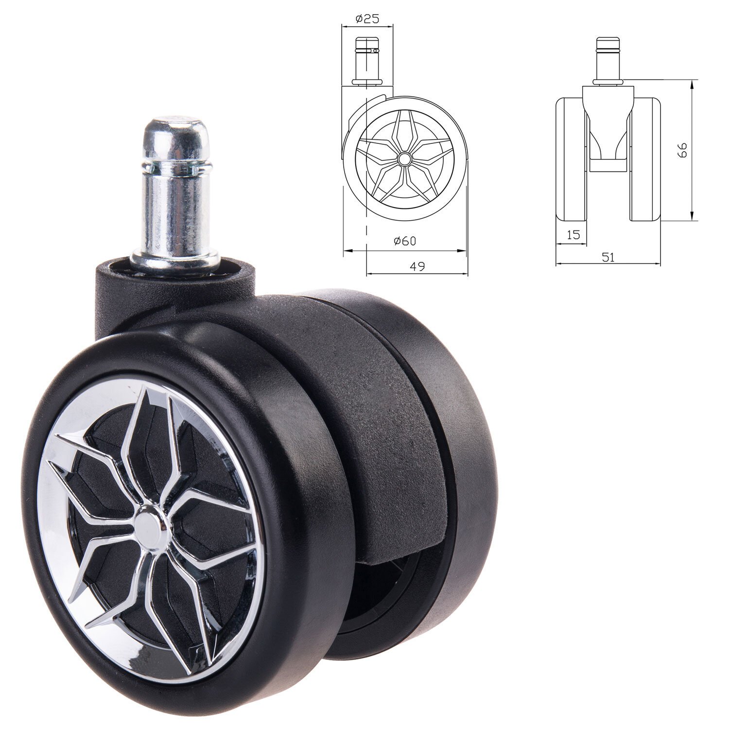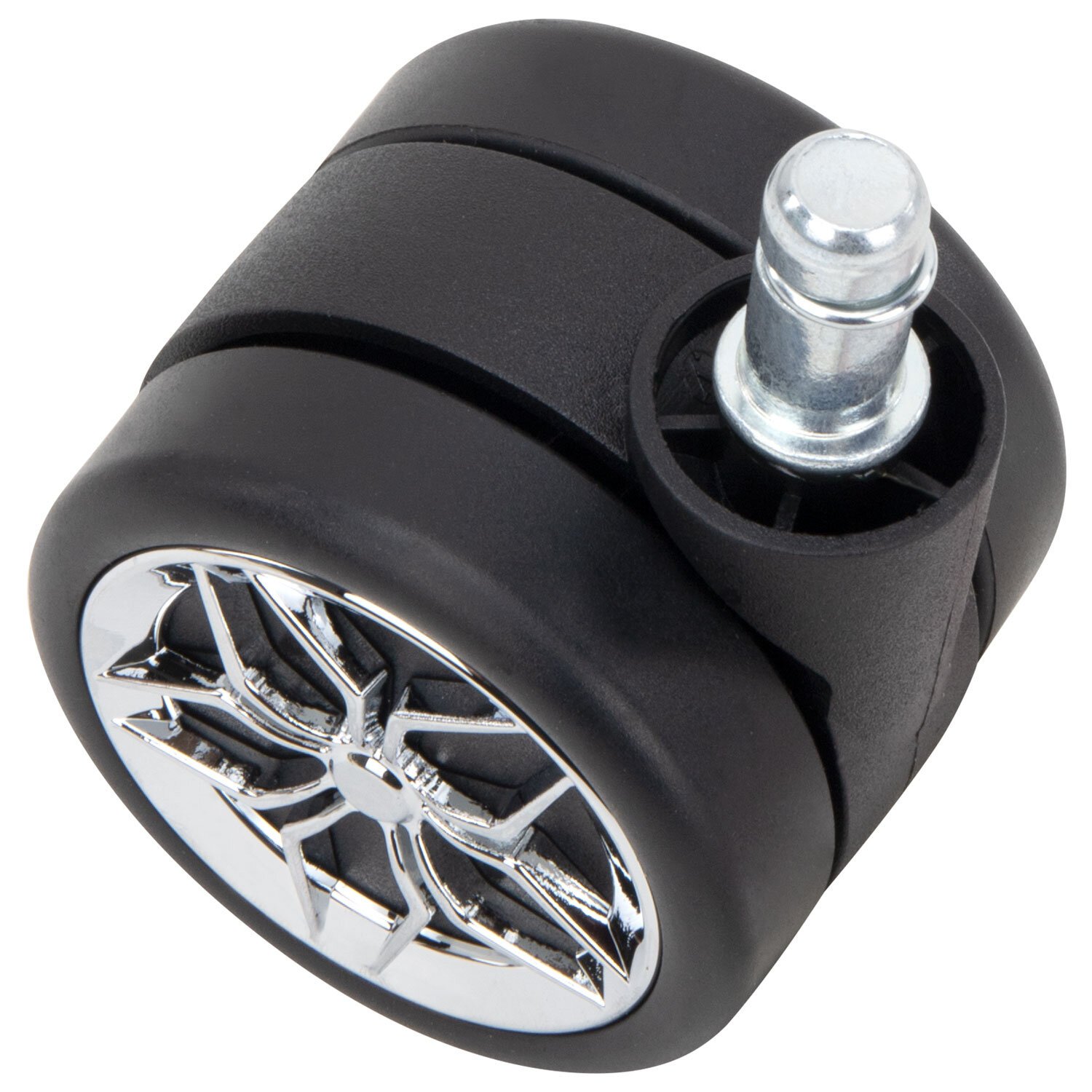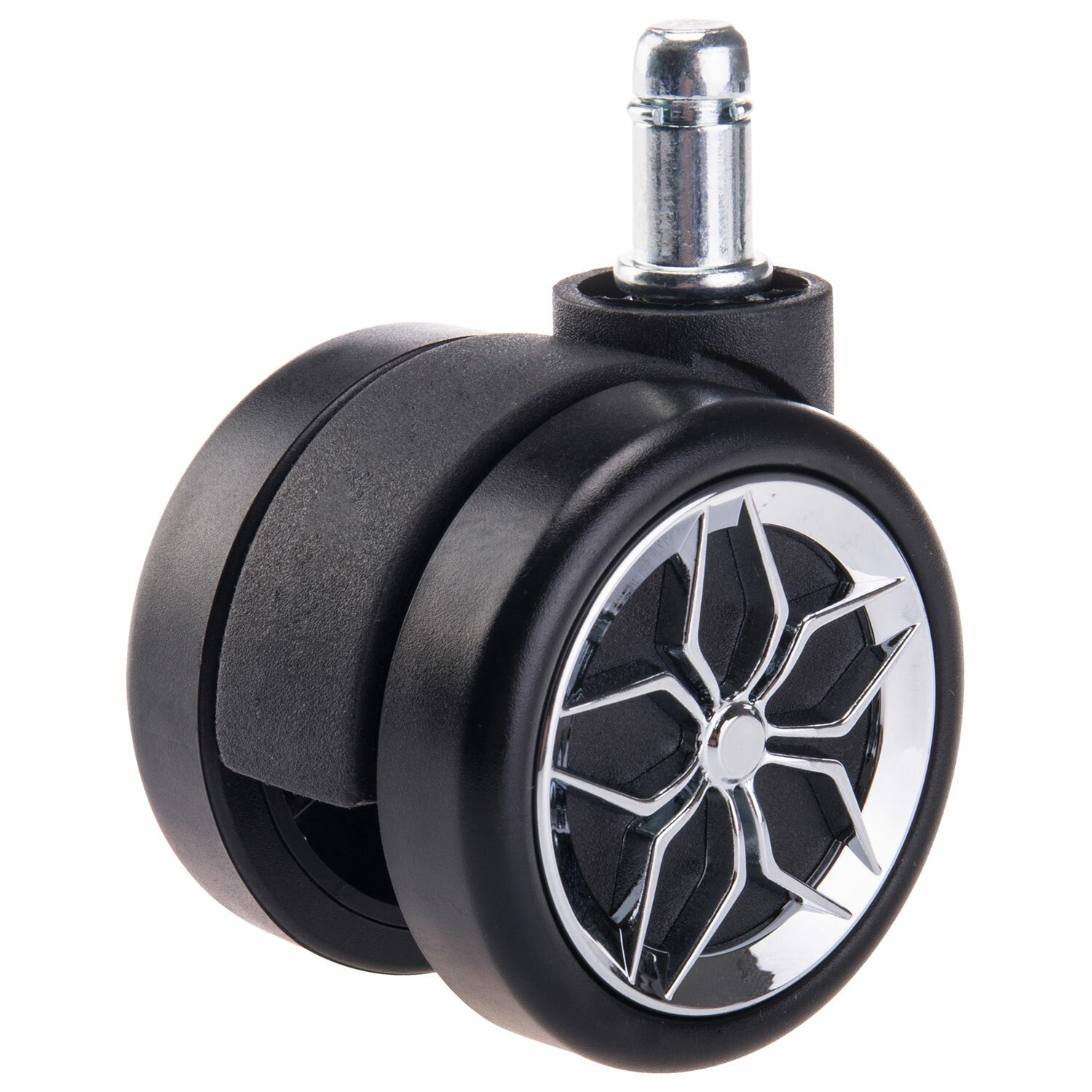 Колеса (ролики) BRABIX для кресла, прорезиненные, ХРОМ, КОМПЛЕКТ 5шт, шток d11мм, черные, короб, 533088