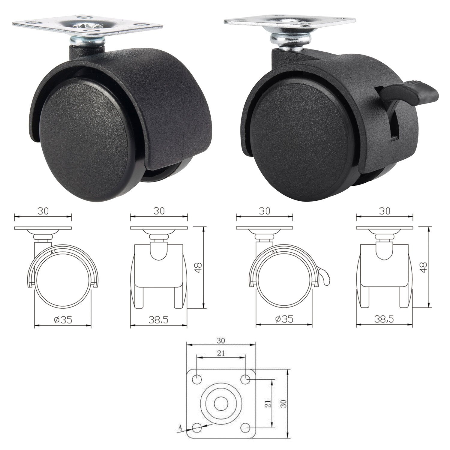 Комплект поворотных роликов для мебели. Надёжно крепятся, просты в установке. Подходят для тумбочек, комодов, столов, диванов, кроватей, кресел, журнальных столиков, тумб под ТВ, стеллажей, подставок под системные блоки и т.д.