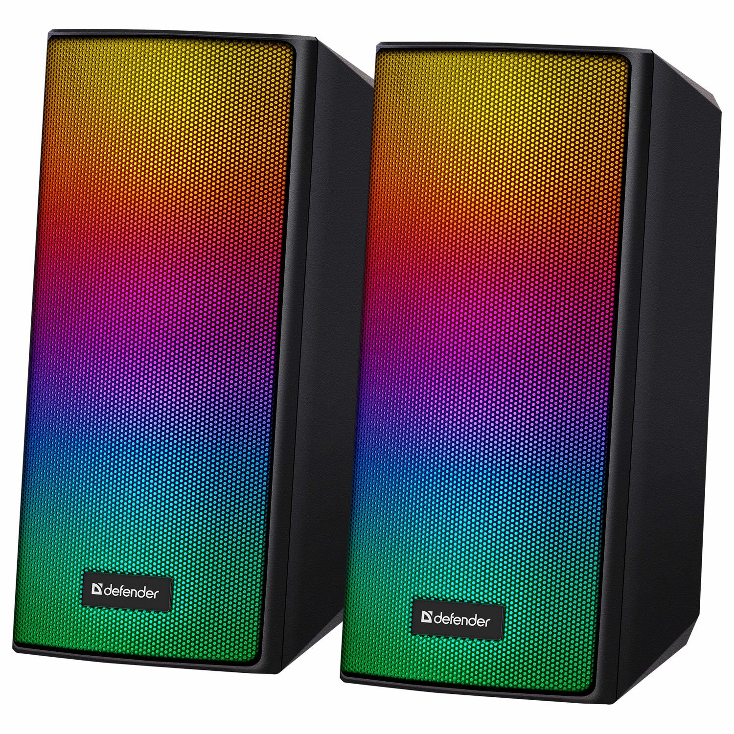 Акустическая система DEFENDER SPITFIRE с переливающейся светодиодной подсветкой и функцией Bluetooth.