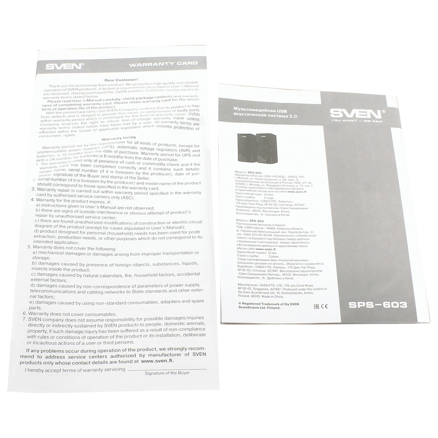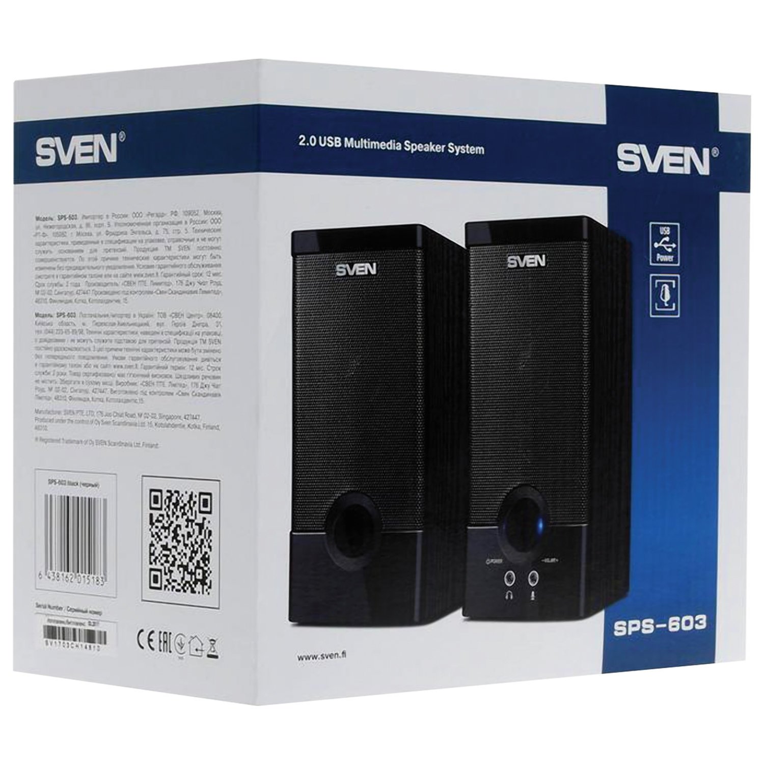 Колонки компьютерные SVEN SPS-603, 2.0, 2х3 Вт, дерево, черные, SV-015183