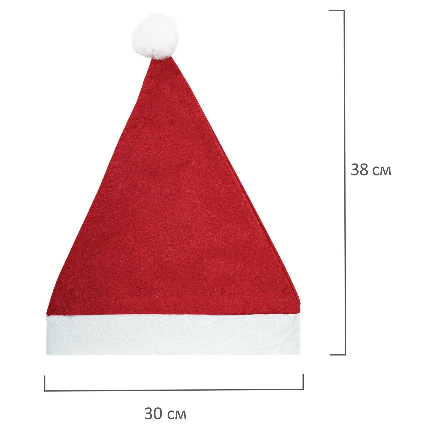 Колпак новогодний размером 30х38 см выполнен в форме треугольника из нетканого полипропилена красного и белого цветов. Сверху колпака имеется помпон белого цвета из полипропилена. Товар c навесной этикеткой.