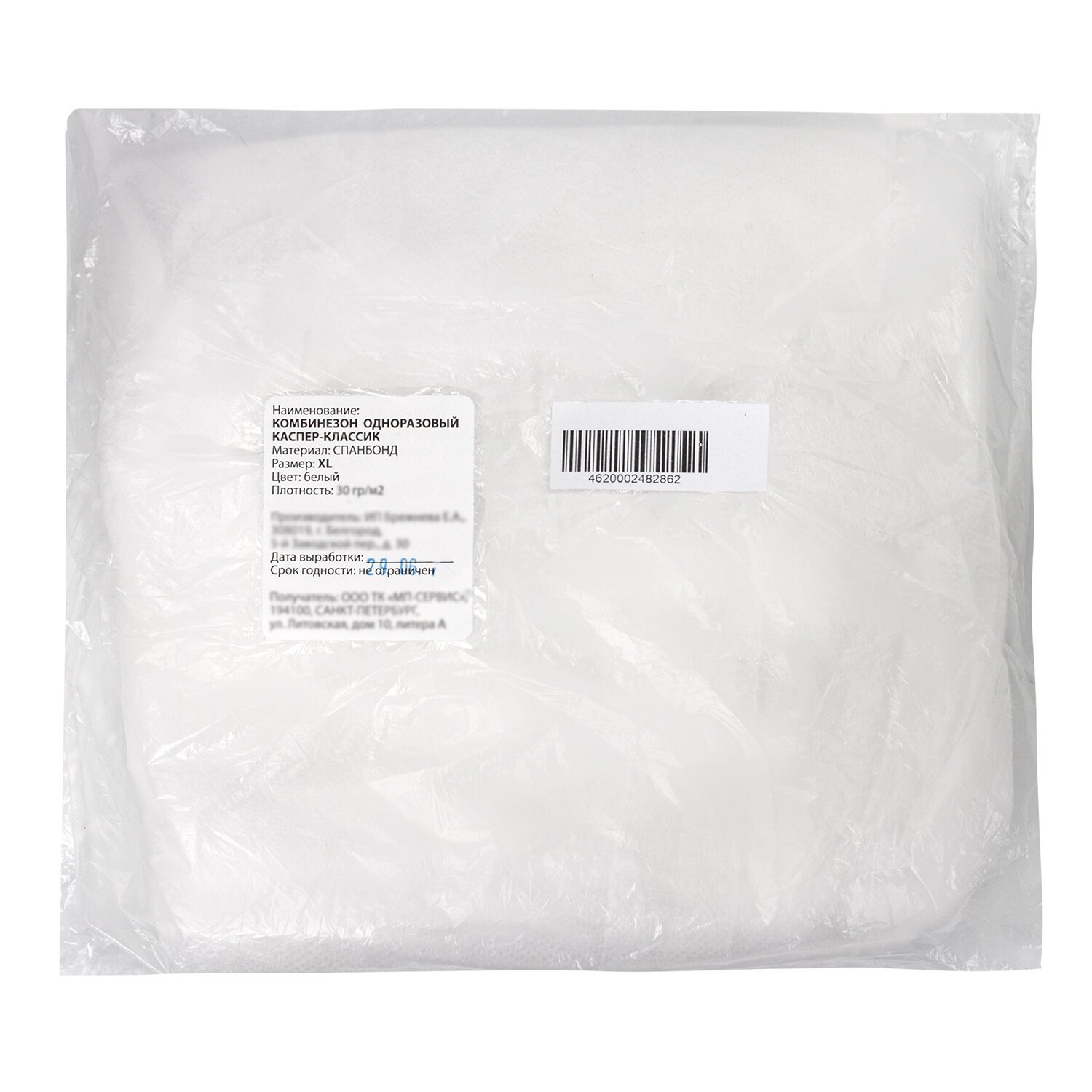 Комбинезон одноразовый с капюшоном более плотный Каспер-классик, плотность 40 г/м2, размер XXXL (60-62), белый
