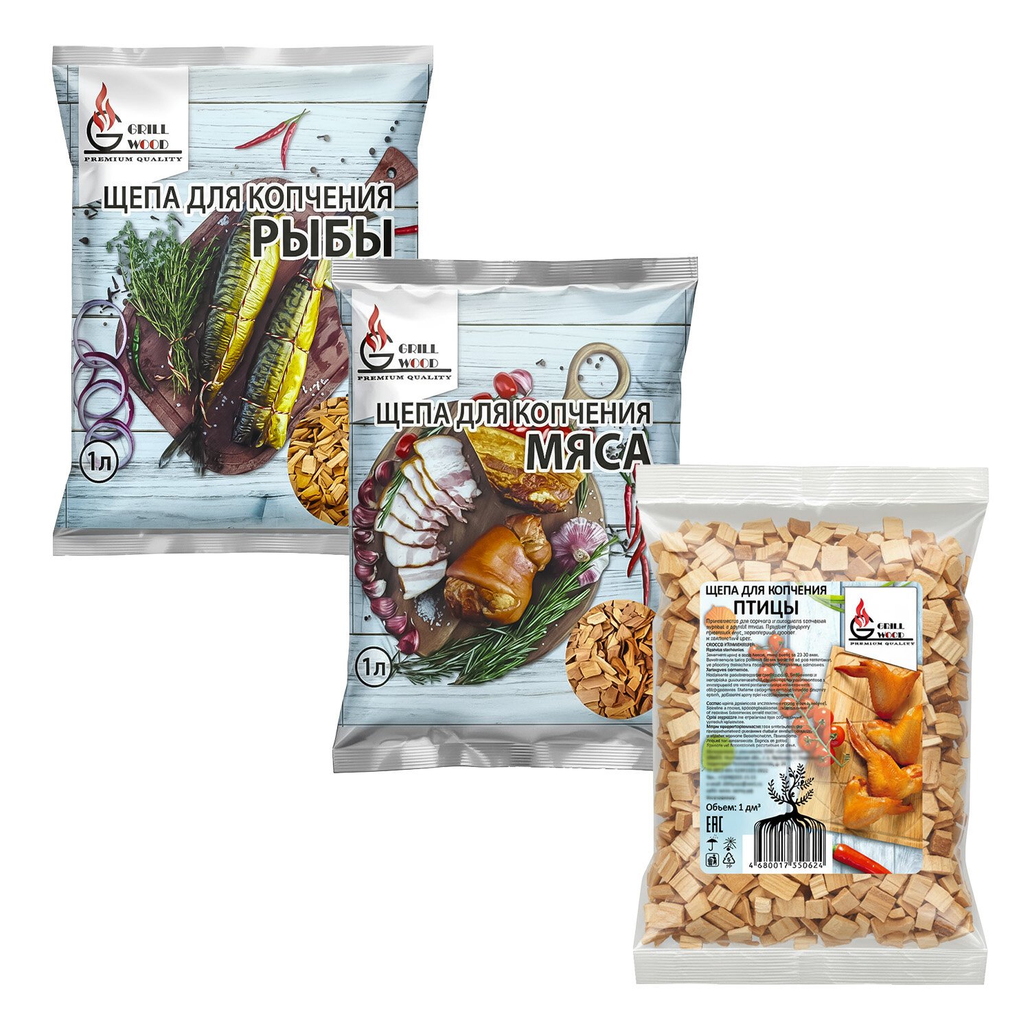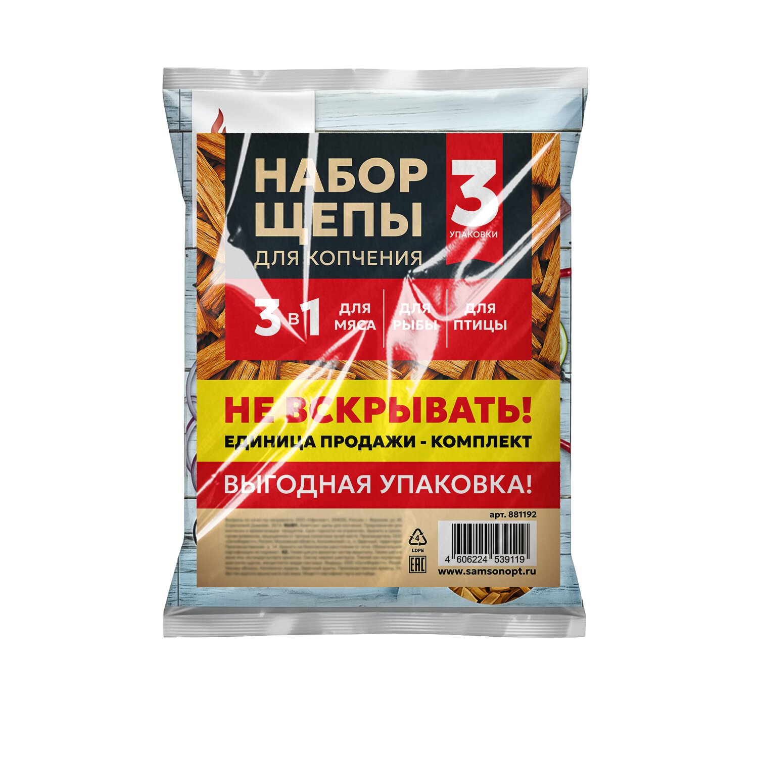 КОМПЛЕКТ щепы для копчения, универсальный, ВЫГОДНАЯ УПАКОВКА, 3в1, МЯСО, РЫБА, ПТИЦА , 881192