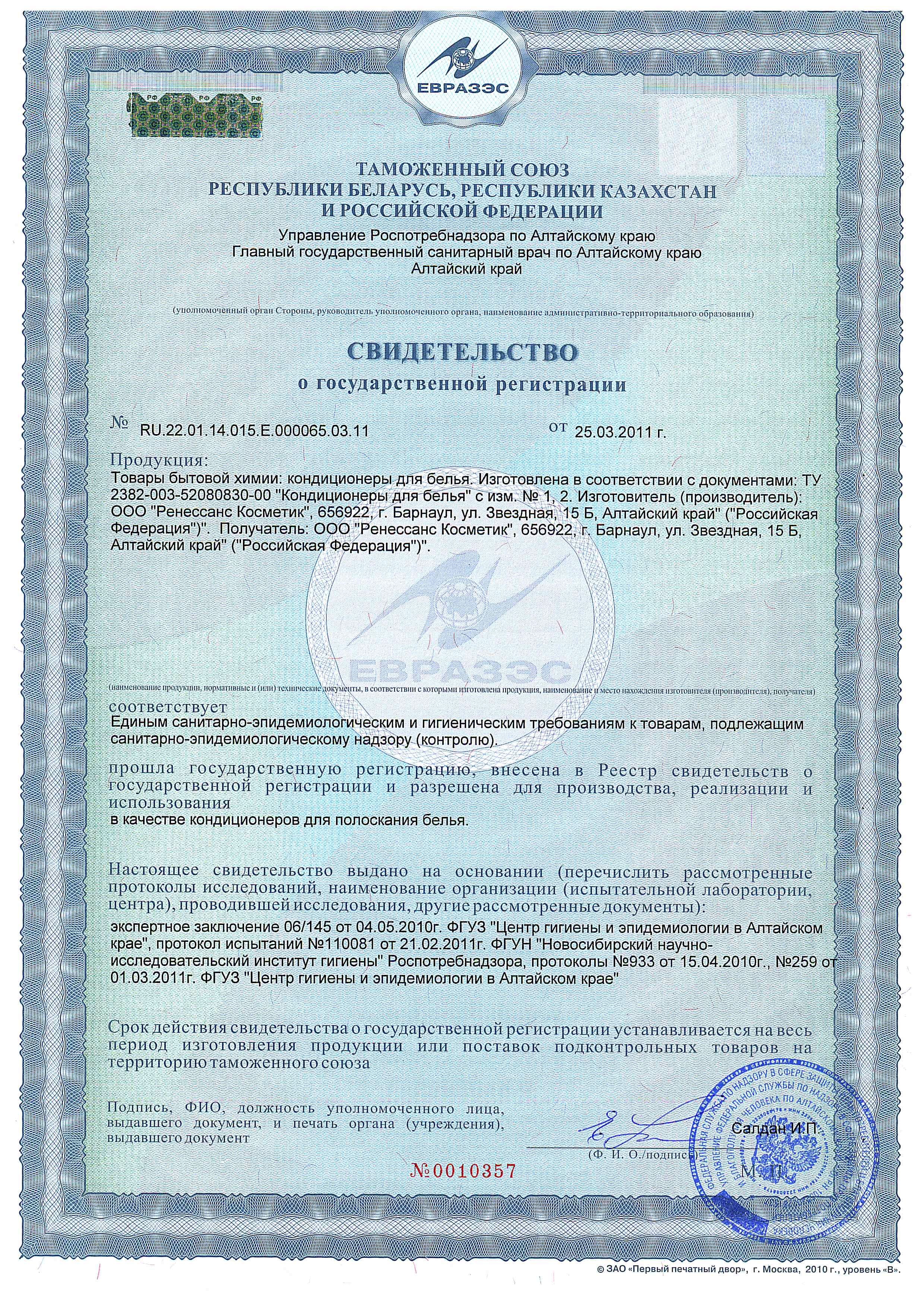 Состав: вода деионизированная (30% и более), катионный ПАВ (менее 5%), парфюмерная композиция (менее 5%), консервант (менее 5%), краситель CI 14720 (менее 5%).
